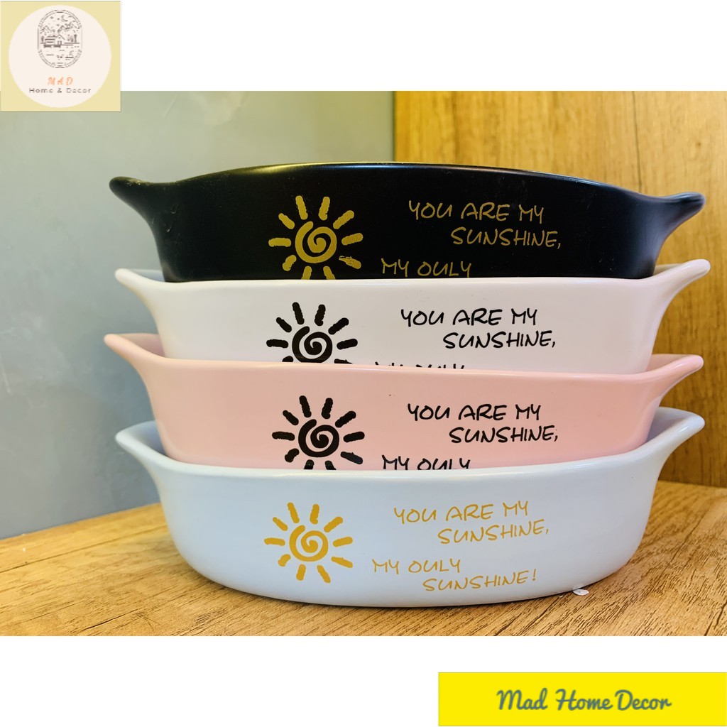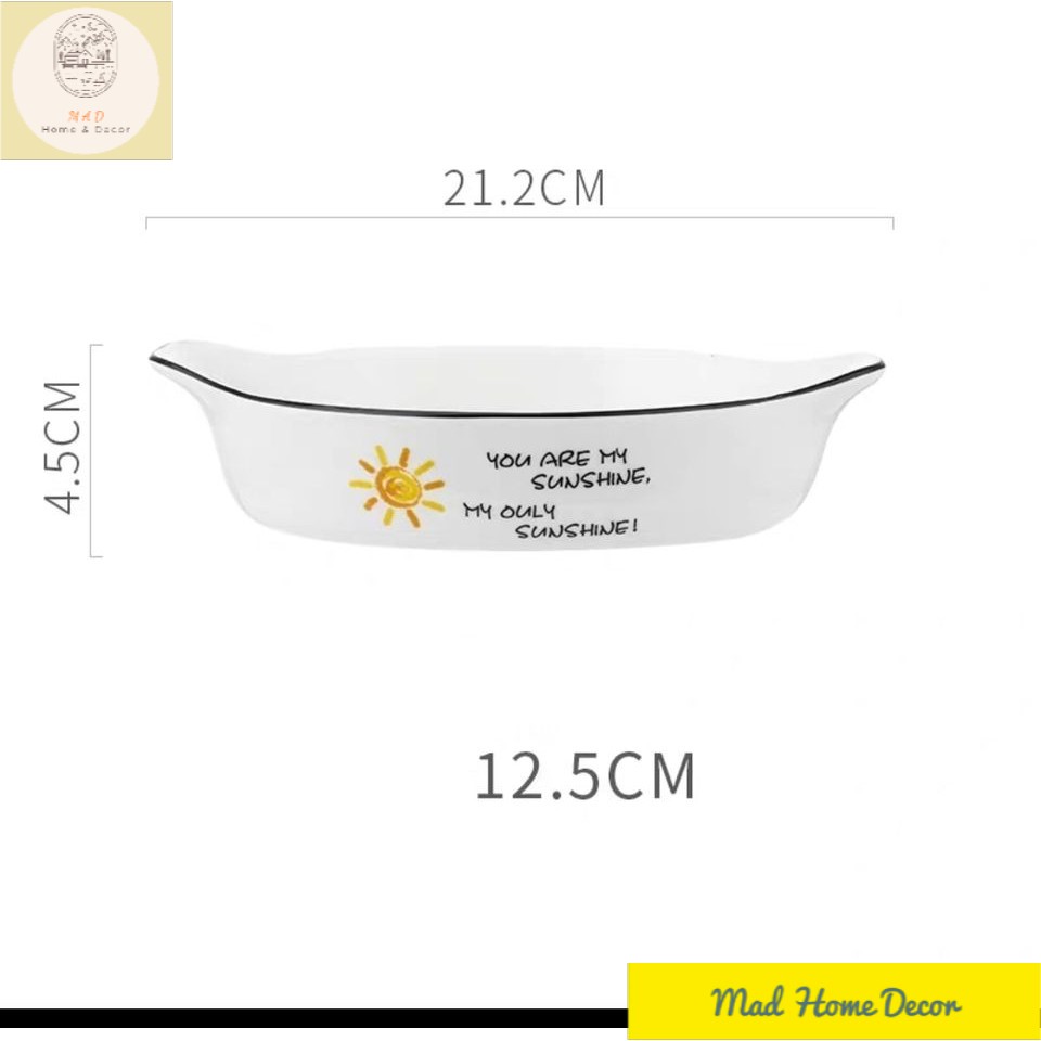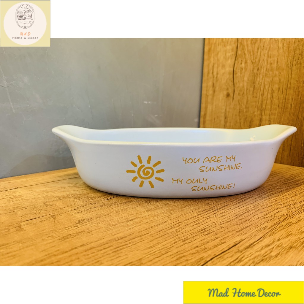 Nhà cửa & Đời sống > Bộ đồ bàn ăn > Tô || Thố nướng vintage chịu nhiệt trắng họa tiết mặt trời - có tay cầm - cao cấp - an toànCòn hàng