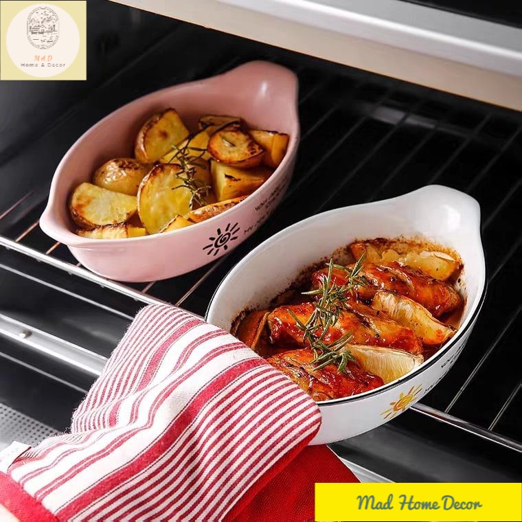 Giới thiệu Thố nướng vintage chịu nhiệt trắng họa tiết mặt trời - có tay cầm - cao cấp - an toàn
