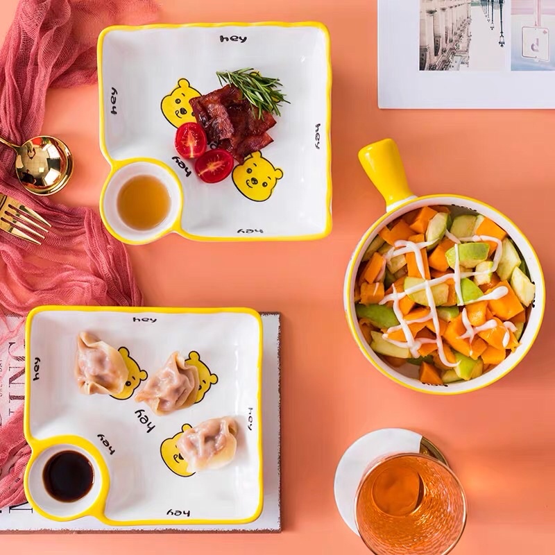 Thố có tay cầm bằng sứ,đĩa kèm chấm vô cùng tiện lợi hình dáng nghộ nghĩnh cao cấpMÔ TẢ SẢN PHẨM