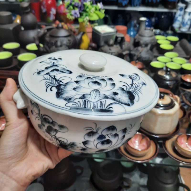 Nhà cửa & Đời sống > Bộ đồ bàn ăn > Tô || Thố sứ có nắp vẽ tay Bát TràngCòn hàng