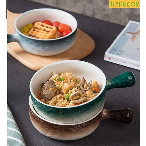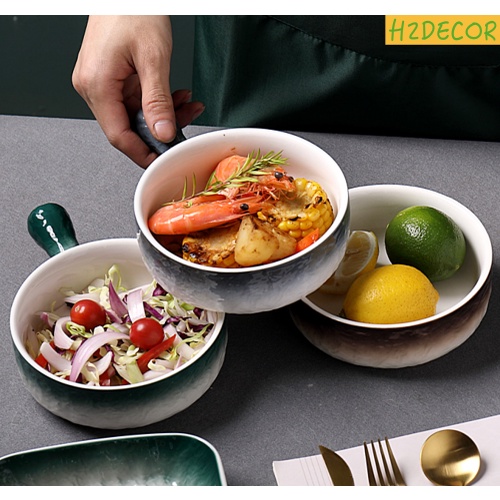 Nhà cửa & Đời sống > Bộ đồ bàn ăn > Dĩa || Thố sứ có tay cầm tráng men vân đá cao cấp phong cách Bắc Âu-H2DECORCòn hàng