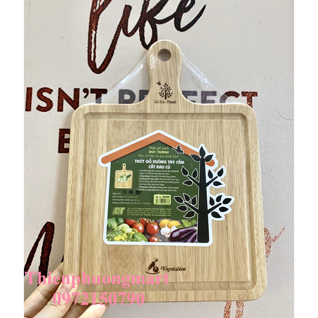 Nhà cửa & Đời sống > Dụng cụ nhà bếp > Thớt || Thớt gỗ vuông tay cầm cắt rau củ Đức Thành 04433 - Thớt gỗ sạch Đức Thành cắt rau củ quảCòn hàng