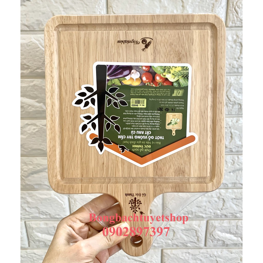 Thớt gỗ vuông tay cầm cắt rau củ 04433 Đức Thành - Thớt gỗ sạch Đức Thành cắt rau củ quả