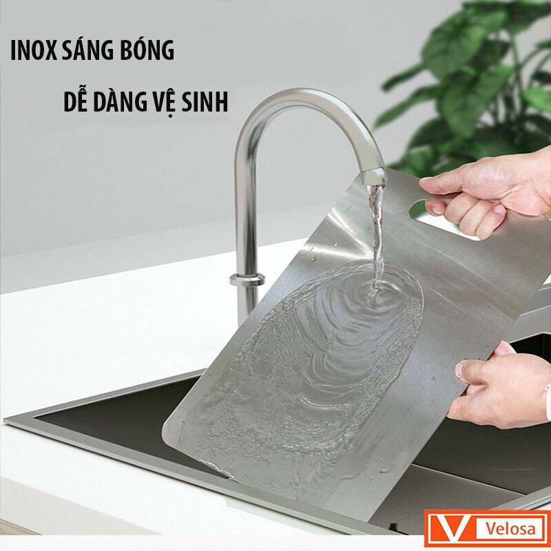 - Bề mặt thớt inox nhẵn nhưng có độ bám nhất định nên dễ vệ sinh sạch sẽ, kháng khuẩn, không ra mùn cưa như thớt gỗ, đảm bảo vệ sinh.