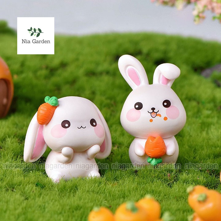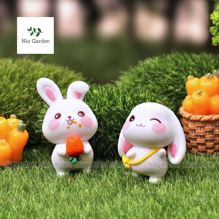 Thỏ tiểu cảnh làm mô hình mini trang trí chậu cây vườn terrarium bể cá Nia Garden N5
