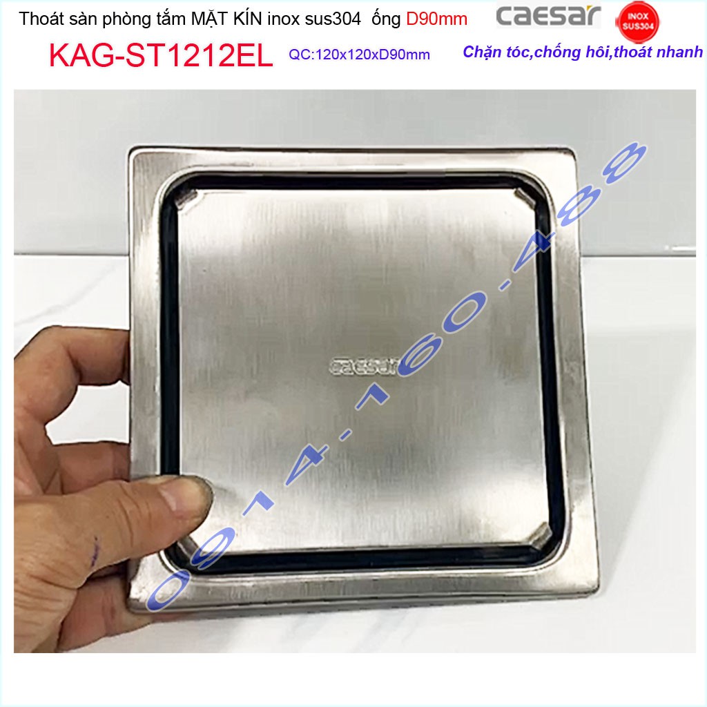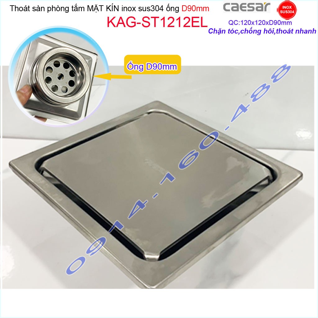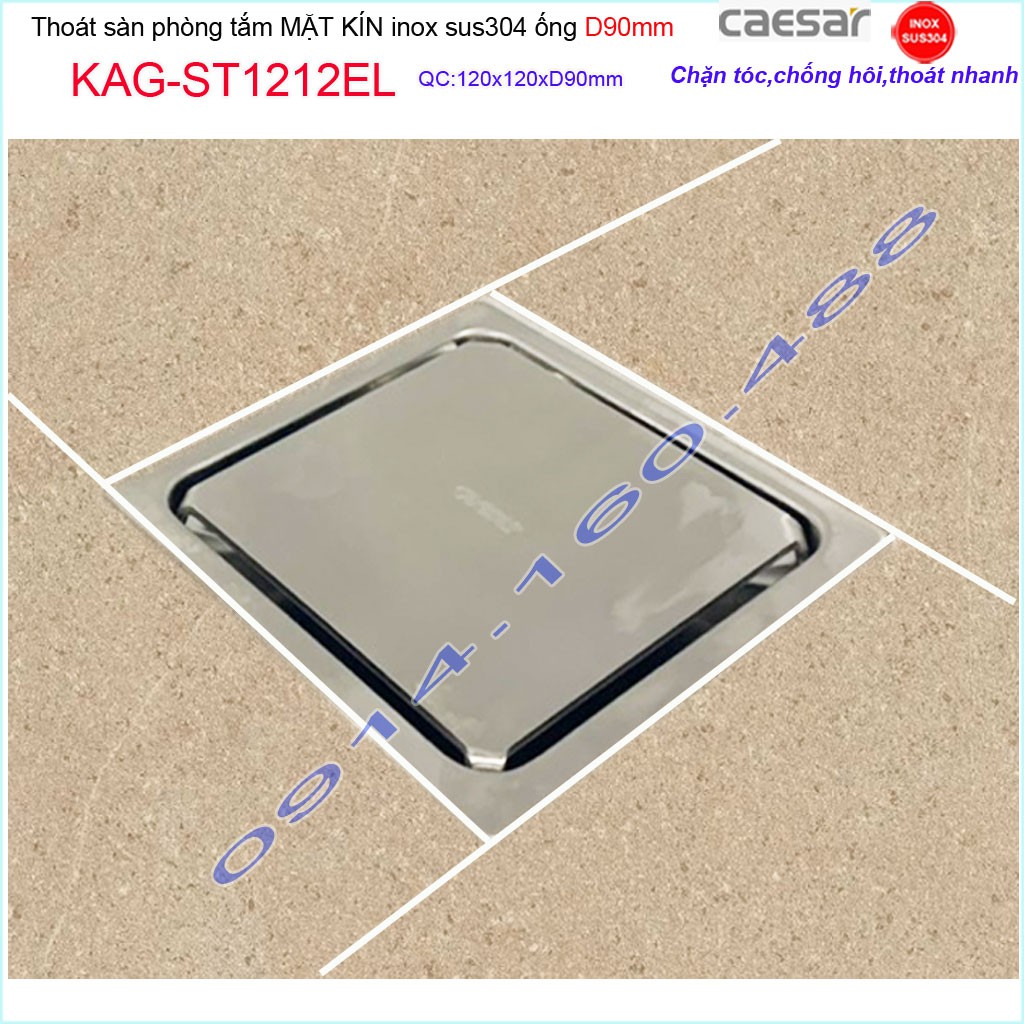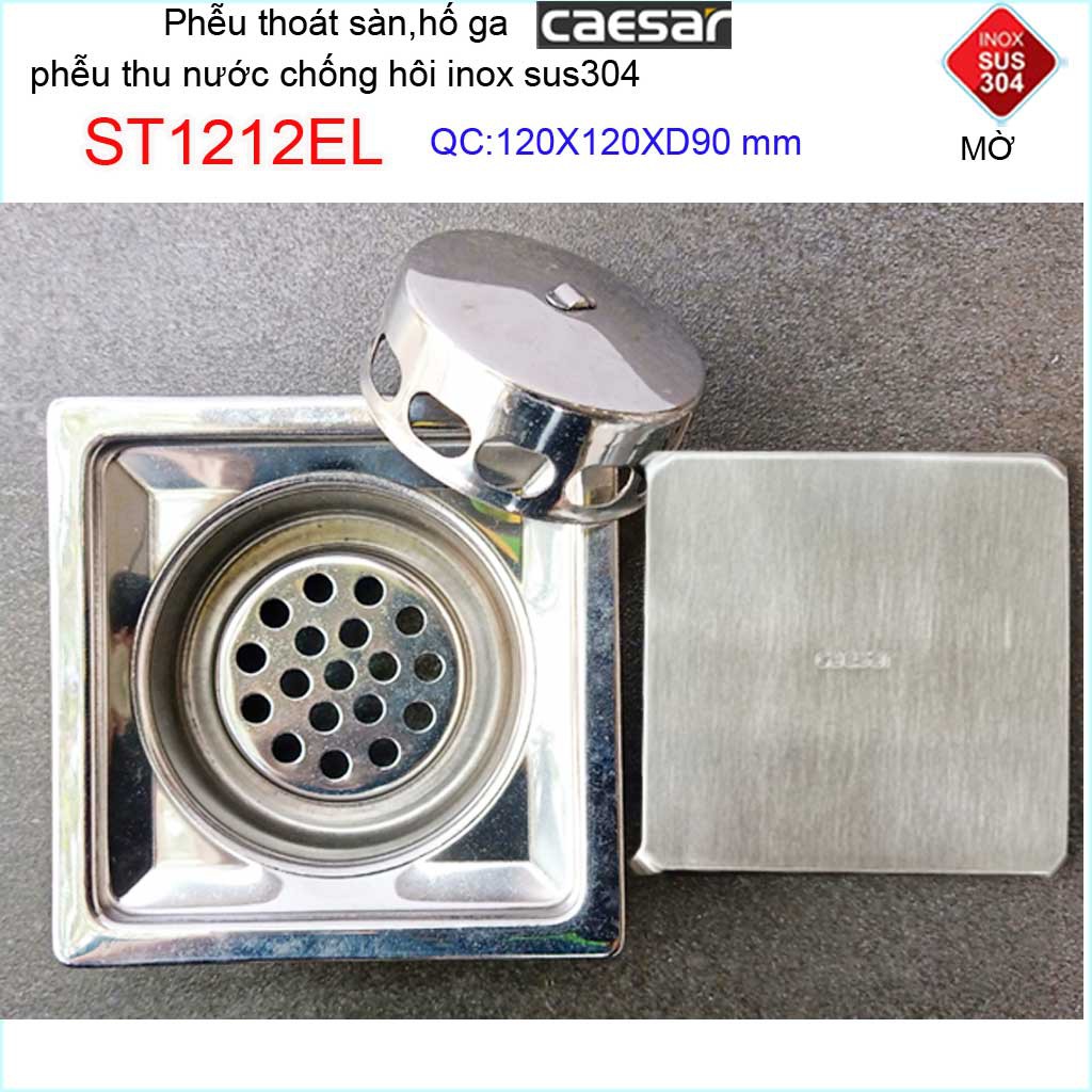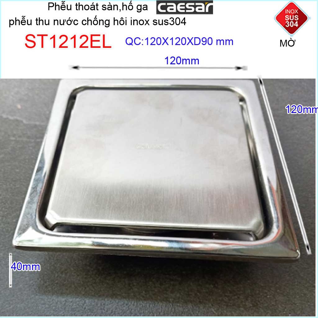 Thoát sàn Caesar 12x12cm ST1212EL-D90 mặt inox kín, phễu thoát sàn SUS304 thoát nước nhanh chống hôi chặn tóc tốtKích thước 120mmx120mm ống D90mm