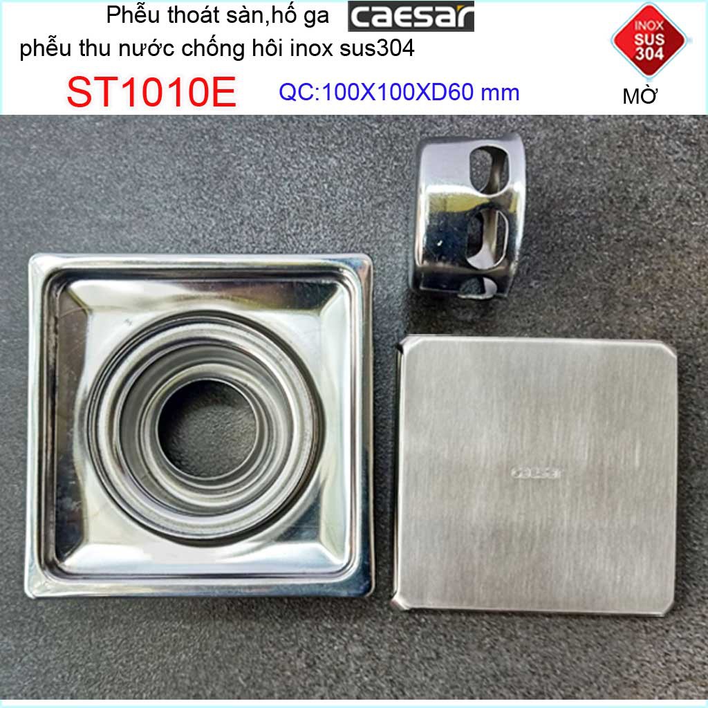 Thoát sàn Caesar, phễu thoát sàn chống mùi hôi Inox 304 cao cấp, phễu thoát nước Caesar 10x10cm ST1010E D60Kích thước 100mmx100mm ống D60mm