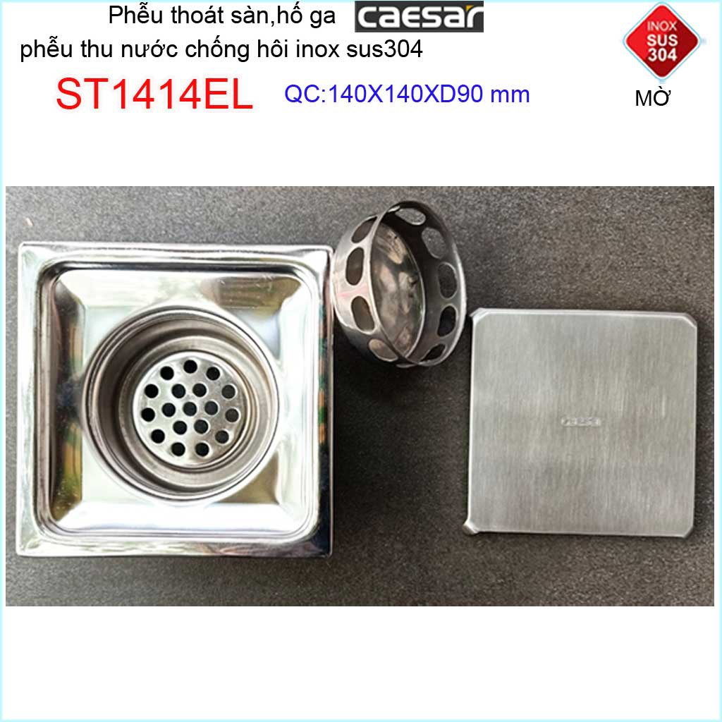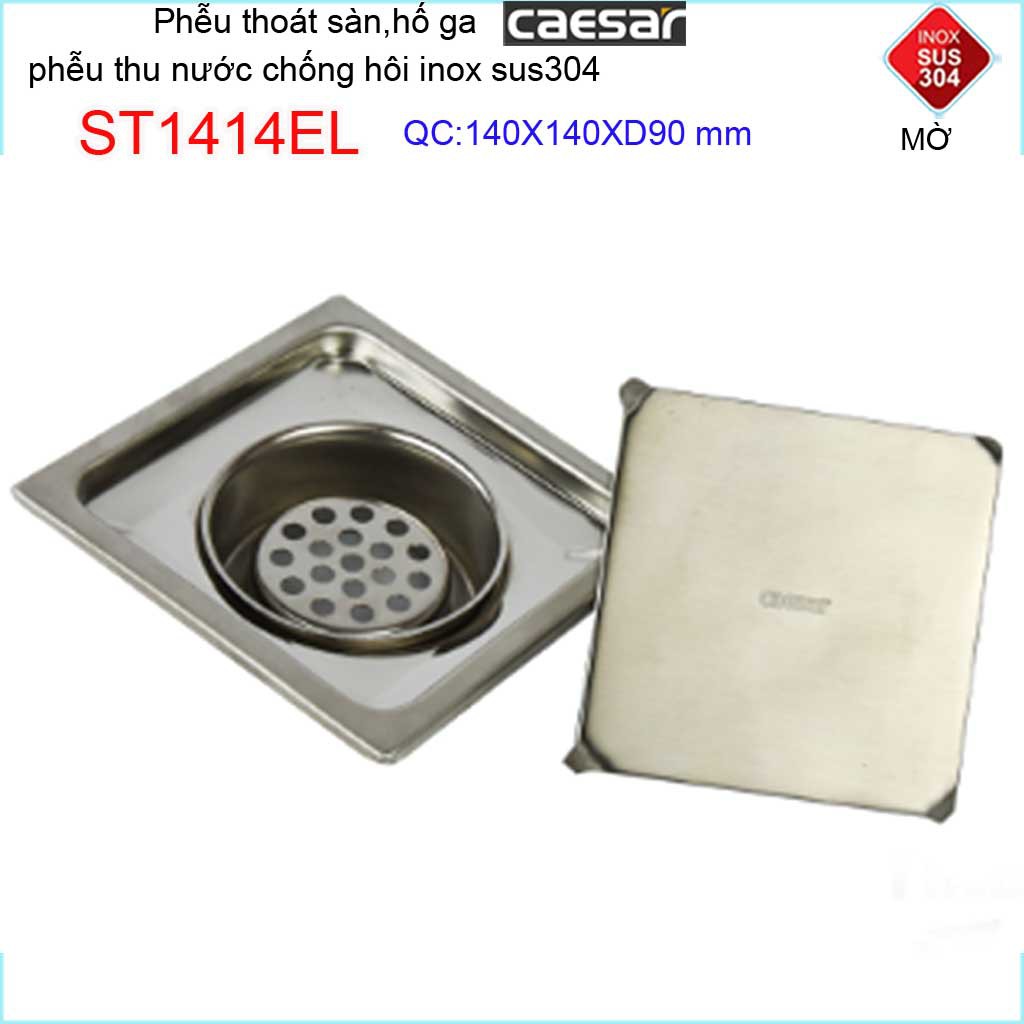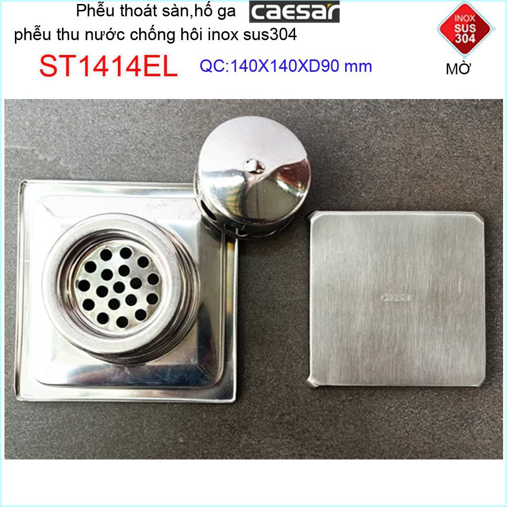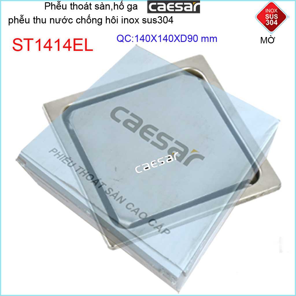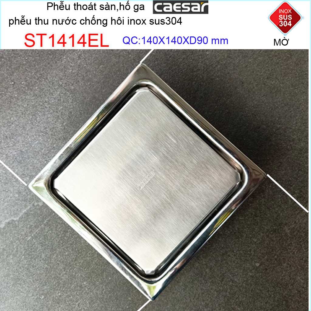 Thoát sàn Caesar, phễu thoát sàn chống mùi hôi Inox 304 cao cấp, phễu thoát nước Caesar 14x14cm ST1414EL D90Kích thước 140mmx140mm ống D90mm