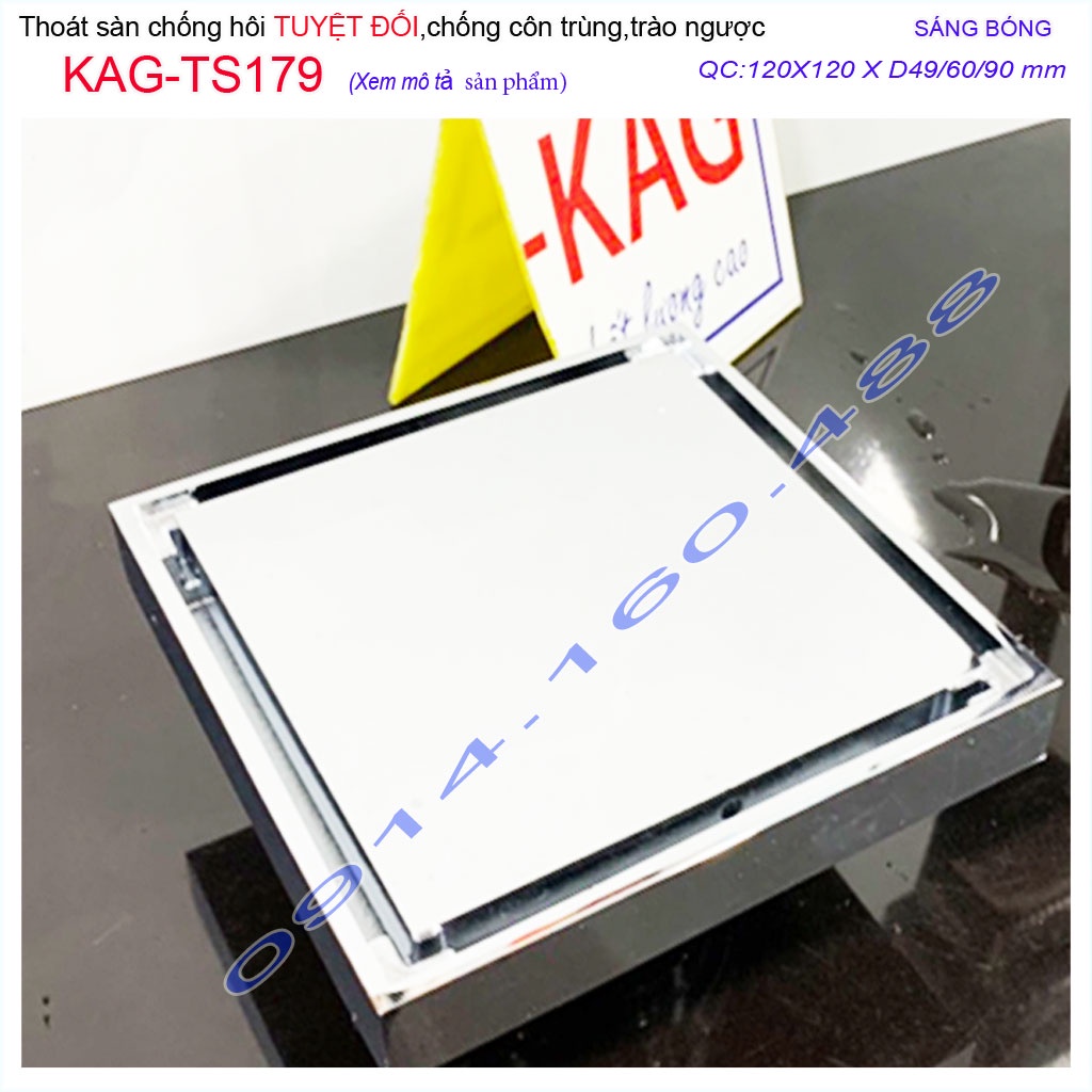 Thoát sàn chống hôi KAG-TS179 12x12cm , thoát sàn chống trào ngược, phễu thoát mặt inox kín chống côn trùngKAG-TS127 KT: 100mmx100mm ống D60mm/90mm