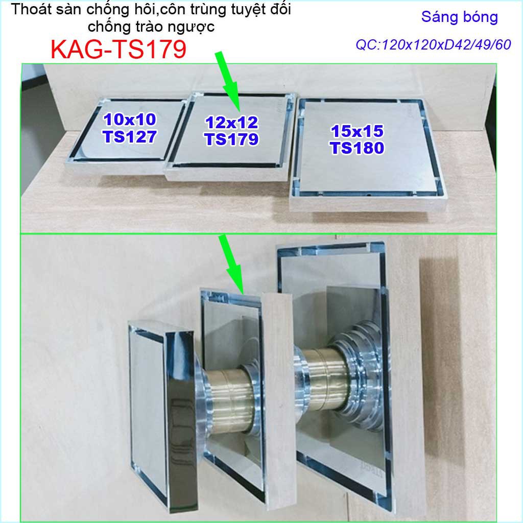 Thoát sàn chống hôi KAG-TS179 12x12cm , thoát sàn chống trào ngược, phễu thoát mặt inox kín chống côn trùng