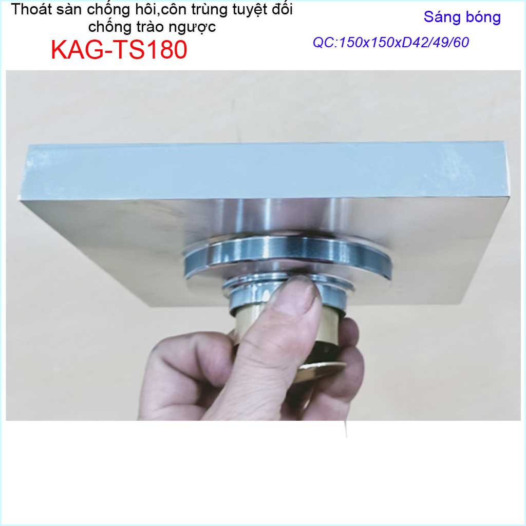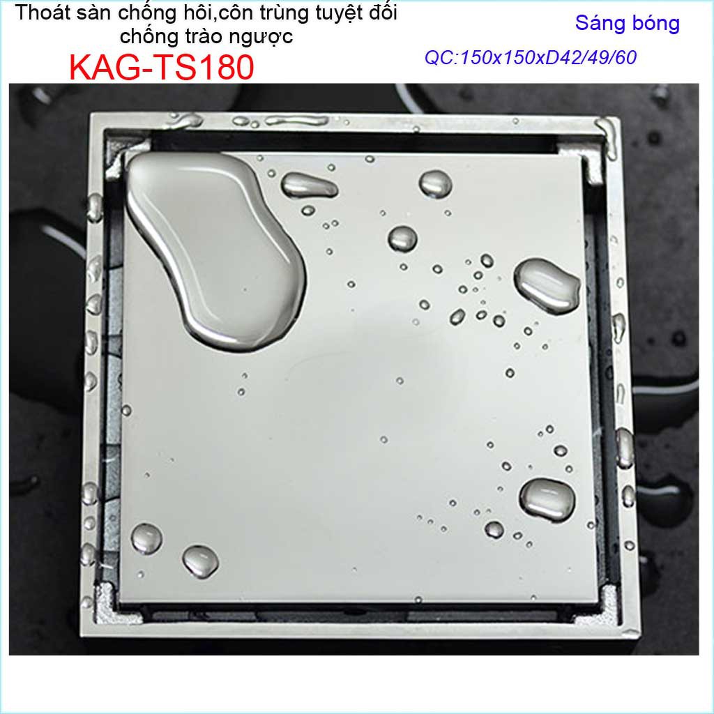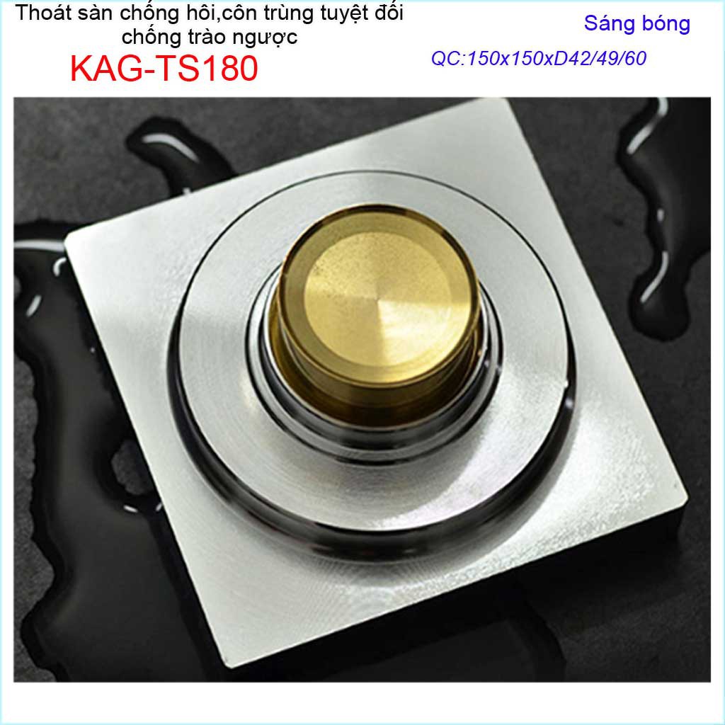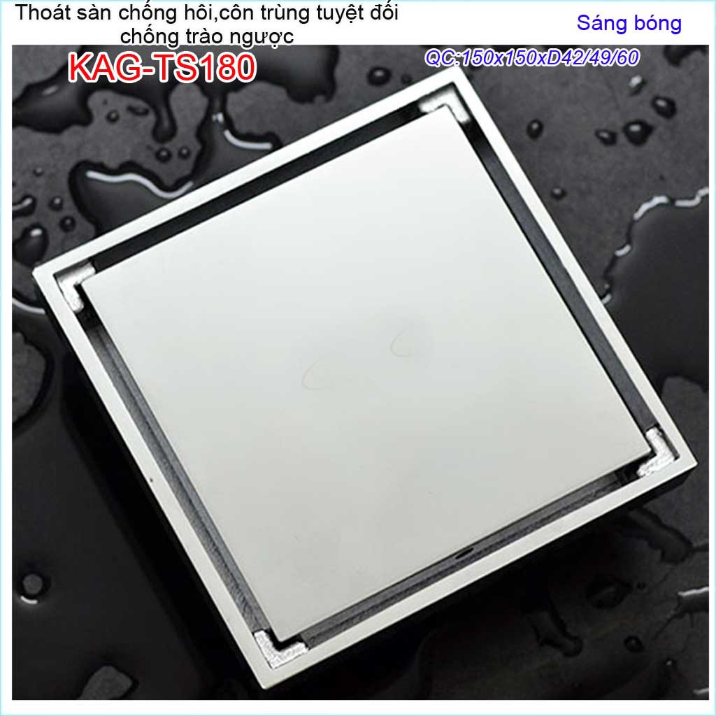 Thoát sàn chống hôi KAG-TS180 15x15cm , thoát sàn chống trào ngược, phễu thoát mặt inox kín chống côn trùng