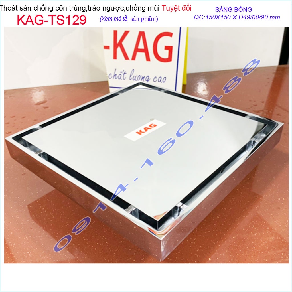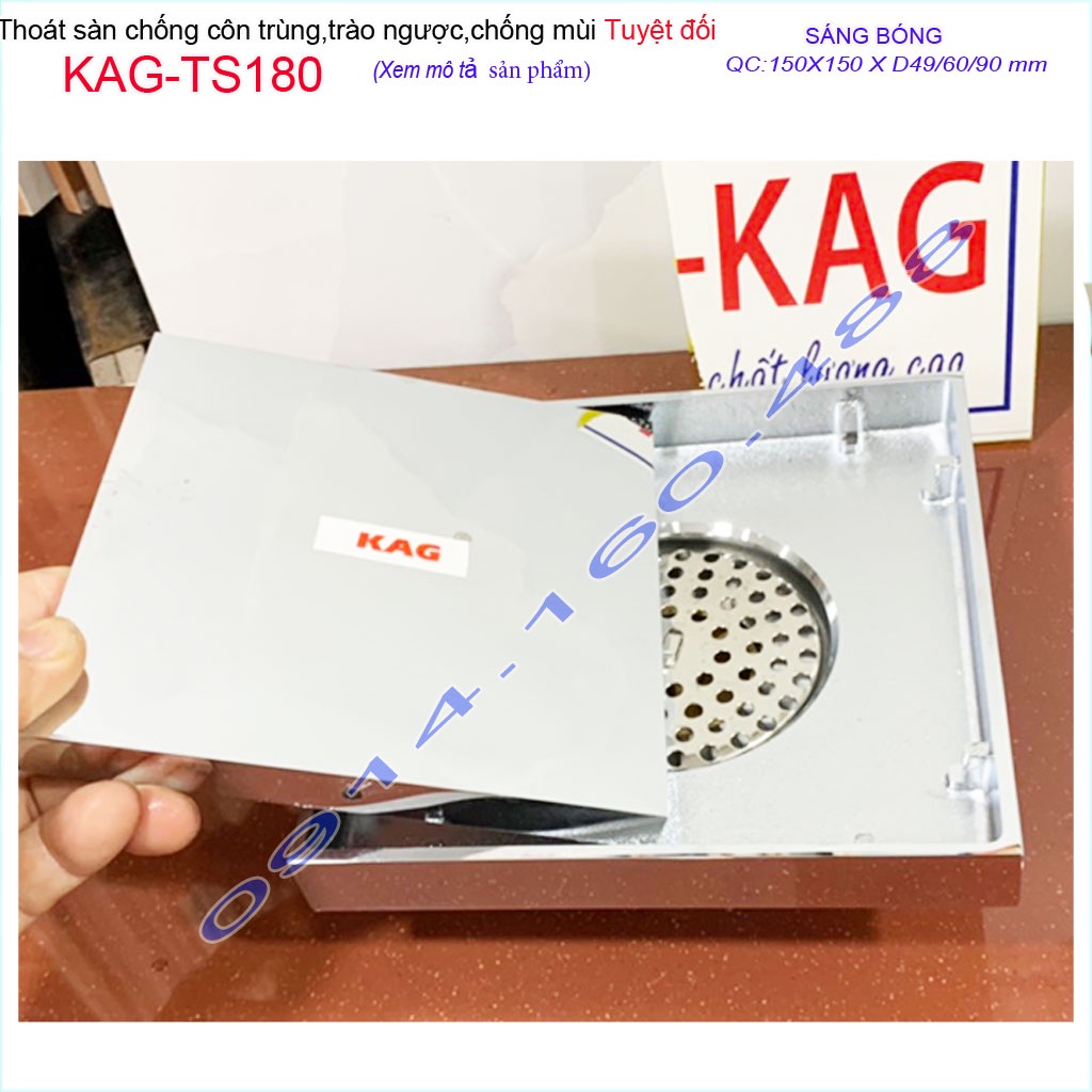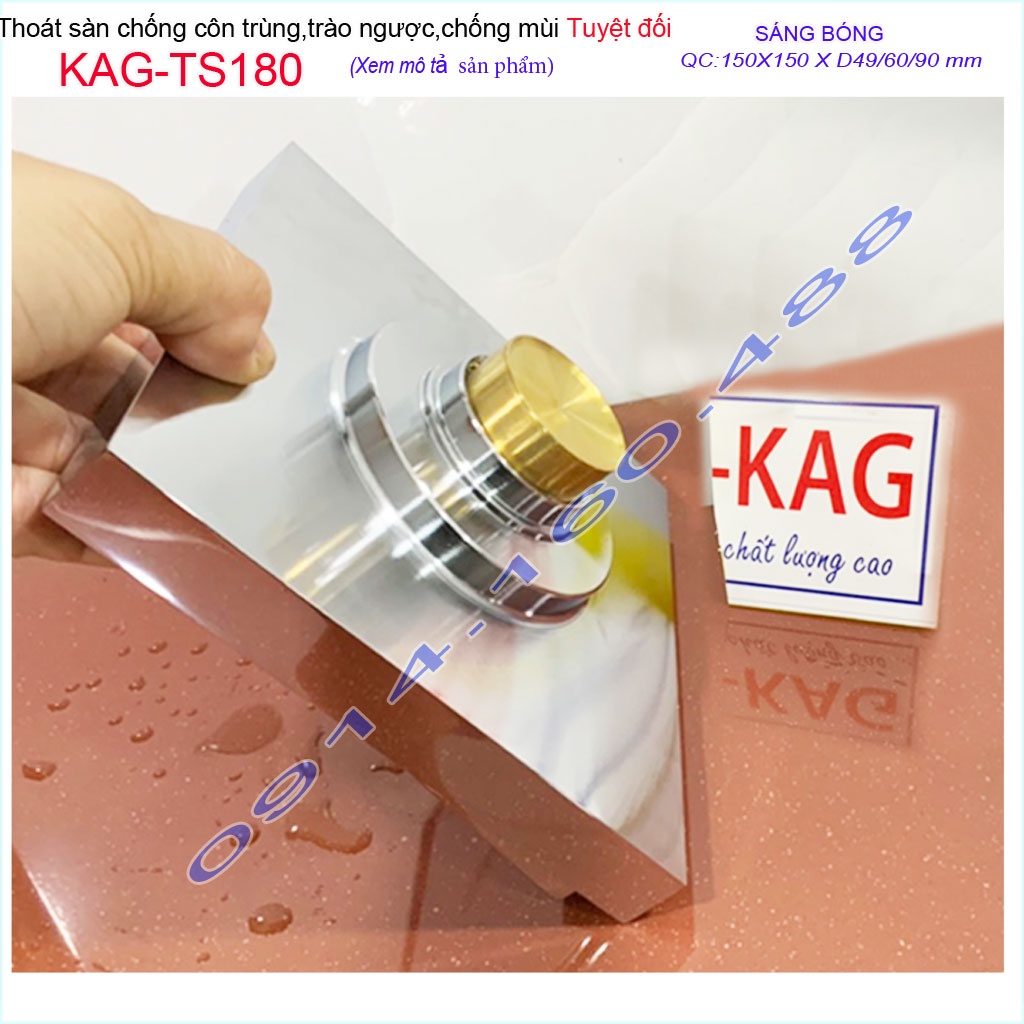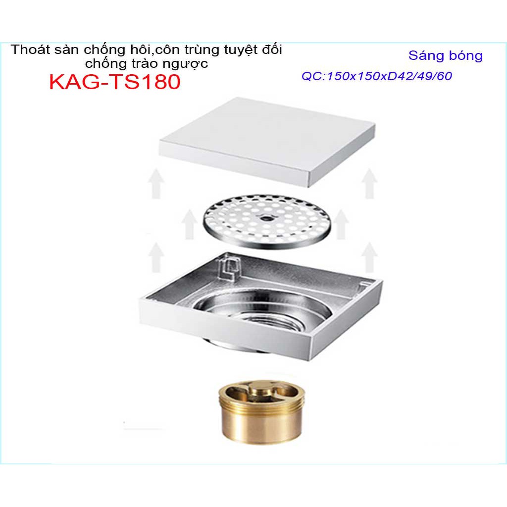 Thoát sàn chống hôi KAG-TS180 15x15cm , thoát sàn chống trào ngược, phễu thoát mặt inox kín chống côn trùngKAG-TS127 KT: 100mmx100mm ống D60mm/90mm
