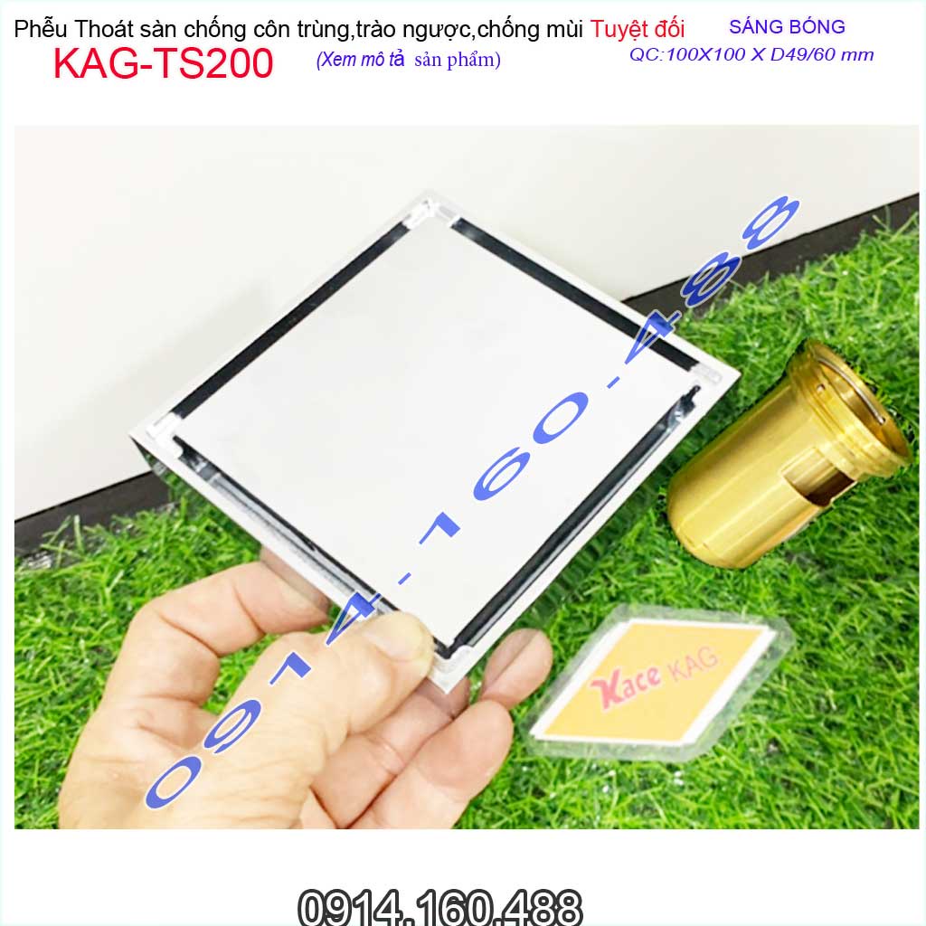 Giới thiệu Thoát sàn chống hôi KAG-TS200 10x10cm đế đầu đạn, phễu thu nước mặt inox kín chống côn trùng thoát nhanh sử dụng tốt