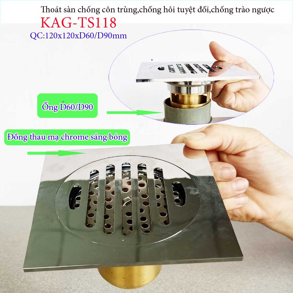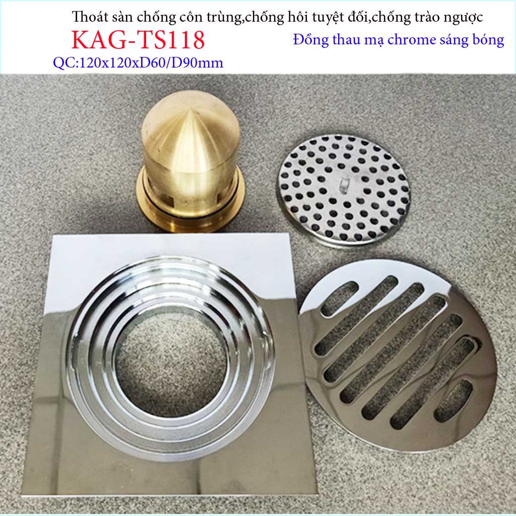 Ga thoát sàn chống côn trùng tuyệt đối KAG-TS118 sản xuất bằng đồng nguyên chất, mạ lớp Chrome-Niken sáng bóng theo thời gian, sản phẩm dùng bền bỉ theo thời gian.