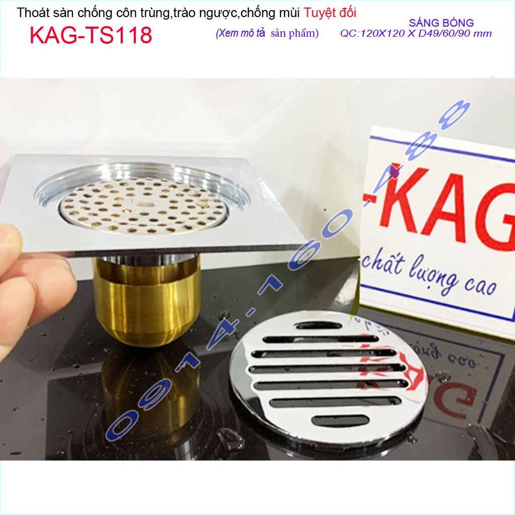 Thoát sàn chống hôi nhà tắm 12x12cm KAG-TS118, phễu thoát sàn chống trào chống côn trùng thoát nước nhanh chặn tóc tốt