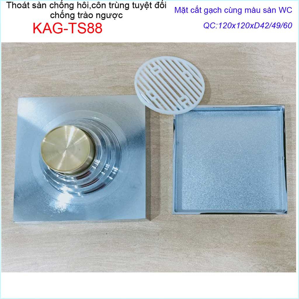 Thoát sàn mặt cắt gạch 12x12cm, thoát sàn âm KAG-TS88, phễu thoát sàn chống hôi chống côn trùng Inox Roca