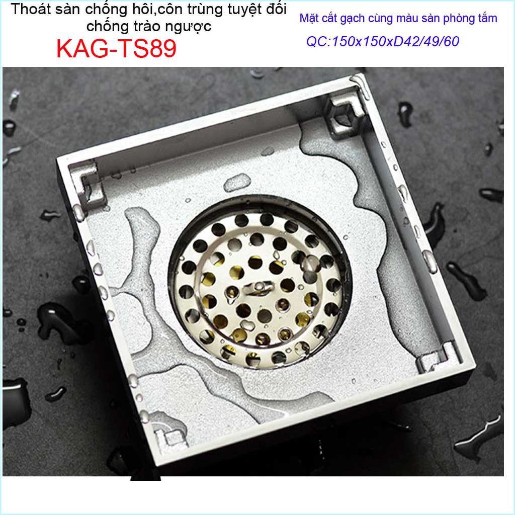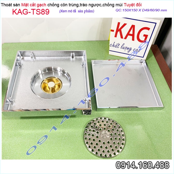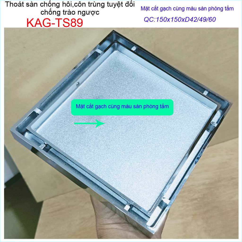 Thoát sàn mặt cắt gạch 15x15cm, thoát sàn âm KAG-TS89, phễu thoát sàn chống hôi chống côn trùng Inox Roca