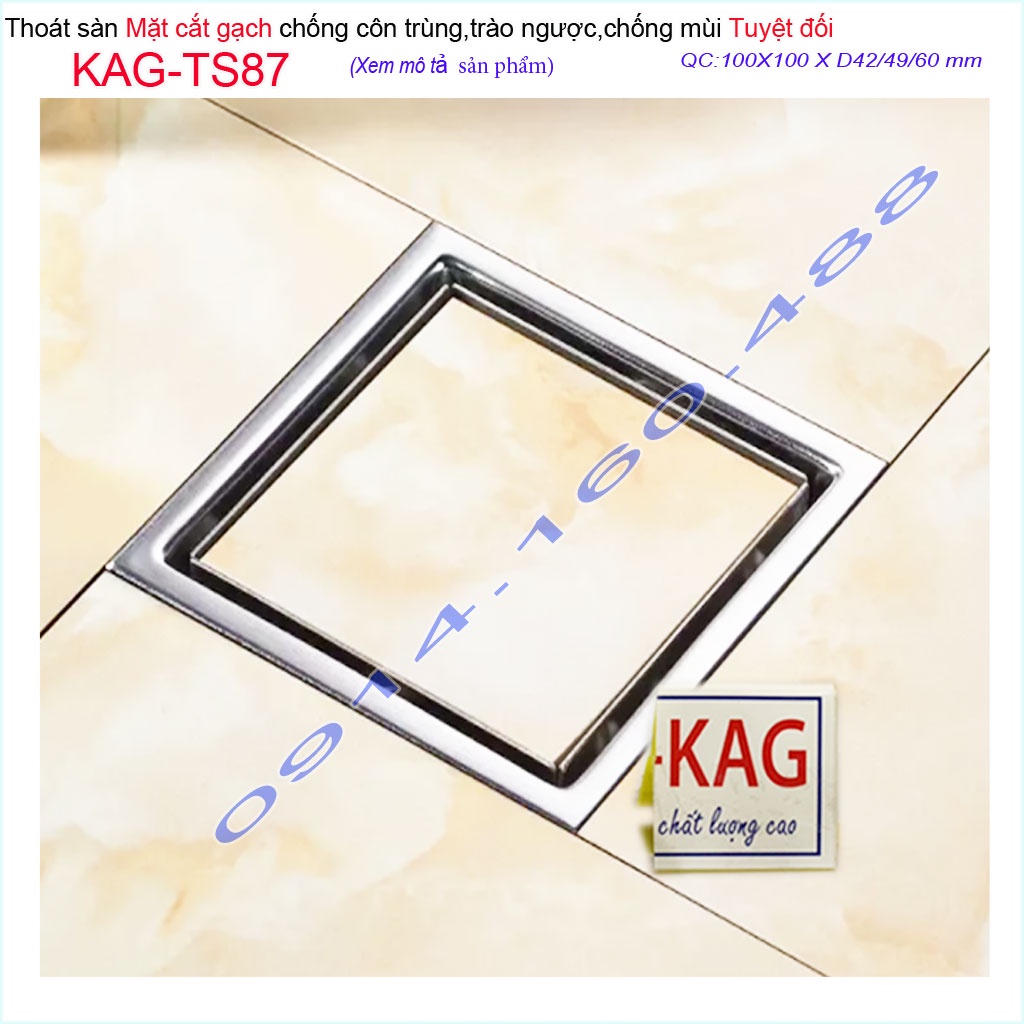 Nhà cửa & Đời sống > Đồ dùng phòng tắm > Khác || Thoát sàn mặt cắt gạch10x10m, thoát sàn âm inox 304 KAG-TS87, phễu thoát sàn chống hôi chống côn trùng Inox RocaCòn hàng