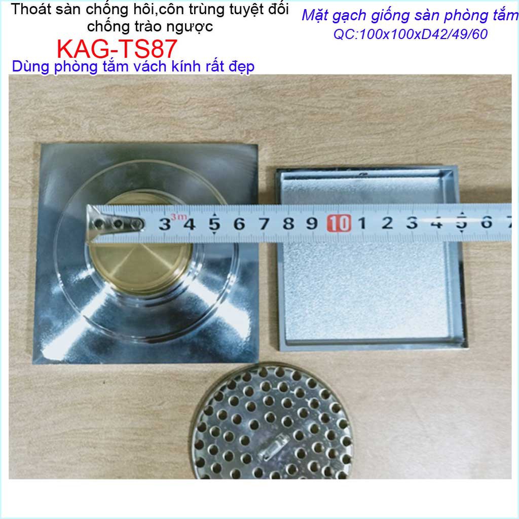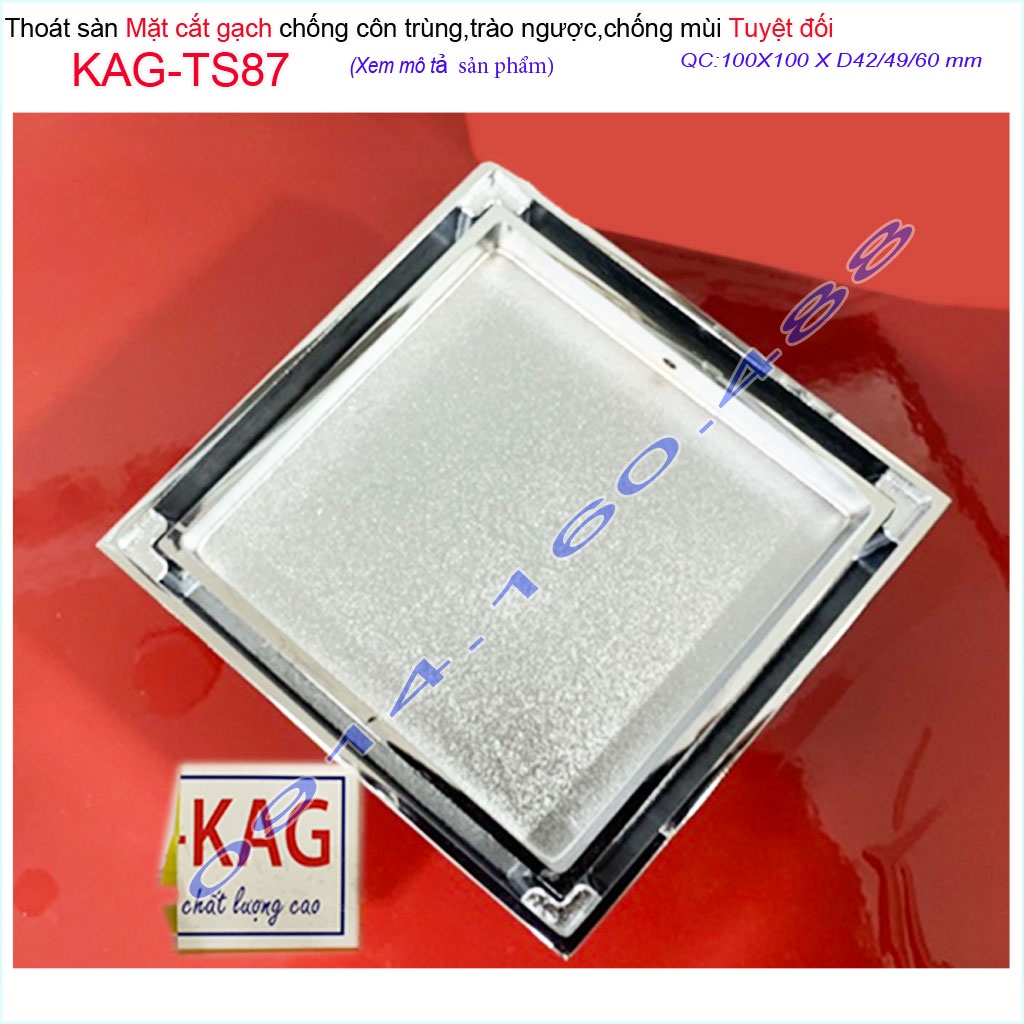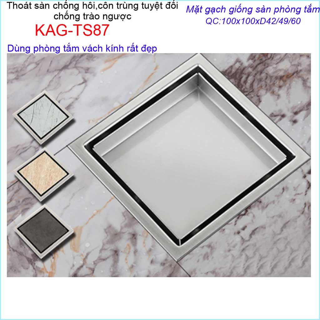 Thoát sàn mặt cắt gạch10x10m, thoát sàn âm inox 304 KAG-TS87, phễu thoát sàn chống hôi chống côn trùng Inox Roca