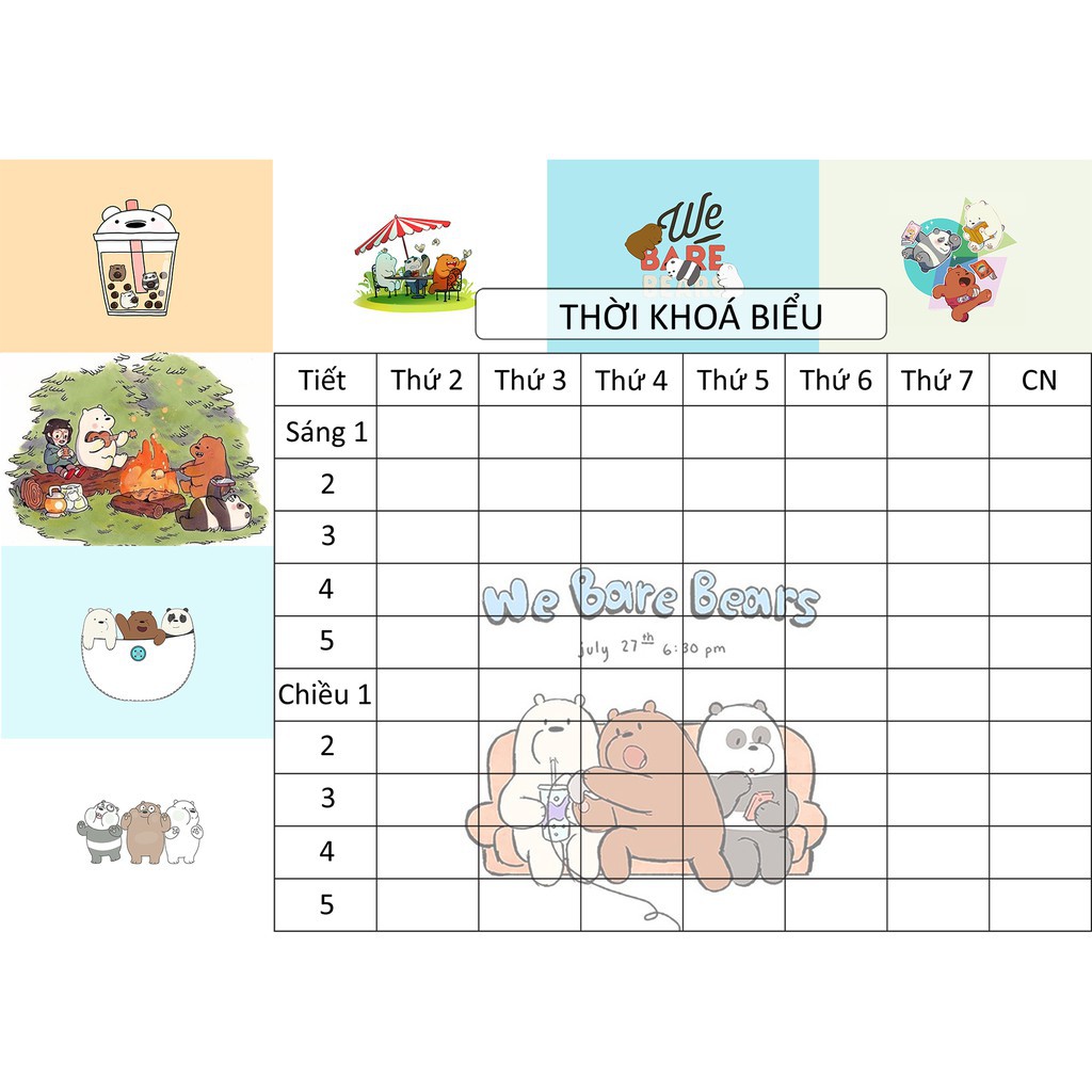 Thời khoá biểu We Bare Bears- Thiết kế sắc nét, rõ đẹp in hình gấu We Bare Bears