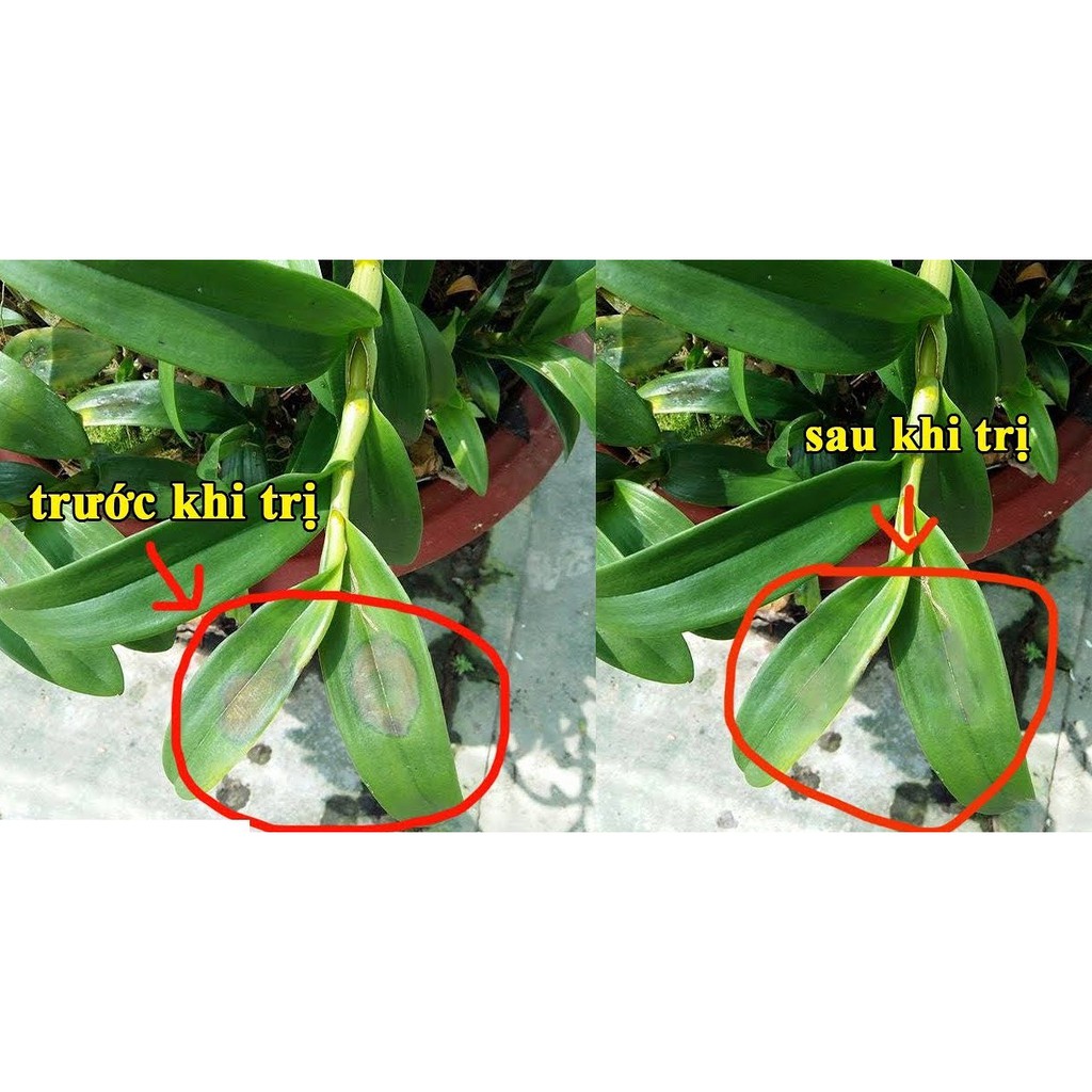 Trị bệnh: Cách ly cây bị bệnh, ngưng tưới nước cho cây thật khô ráo. Pha 5g+ 1 lít nước phun ướt đẫm cây và giá thể. Phun lặp lại 1 lần sau 5 ngày. Ngưng tưới nước cho đến khi vết bệnh đã chuyển màu đen và khô hẳn.