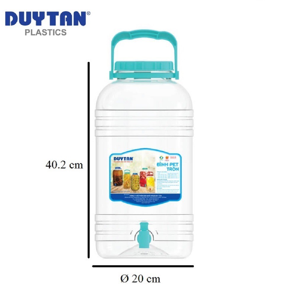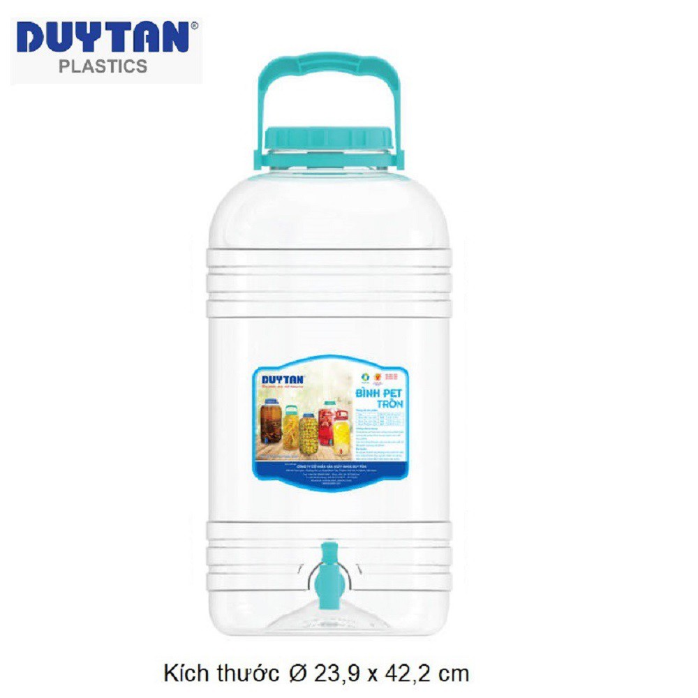 - Bình PET Đựng Nước Tròn Có Vòi 10 Lít Duy Tân (Ø 20 x 40.2 cm) No.625 được làm từ nhựa P.E.T an toàn tuyệt đối, không chứa BPA, được Cục Quản lý Dược phẩm và Thực phẩm Hoa Kỳ FDA chứng nhận.