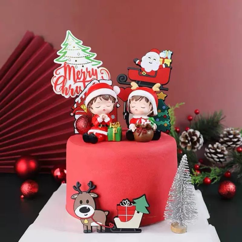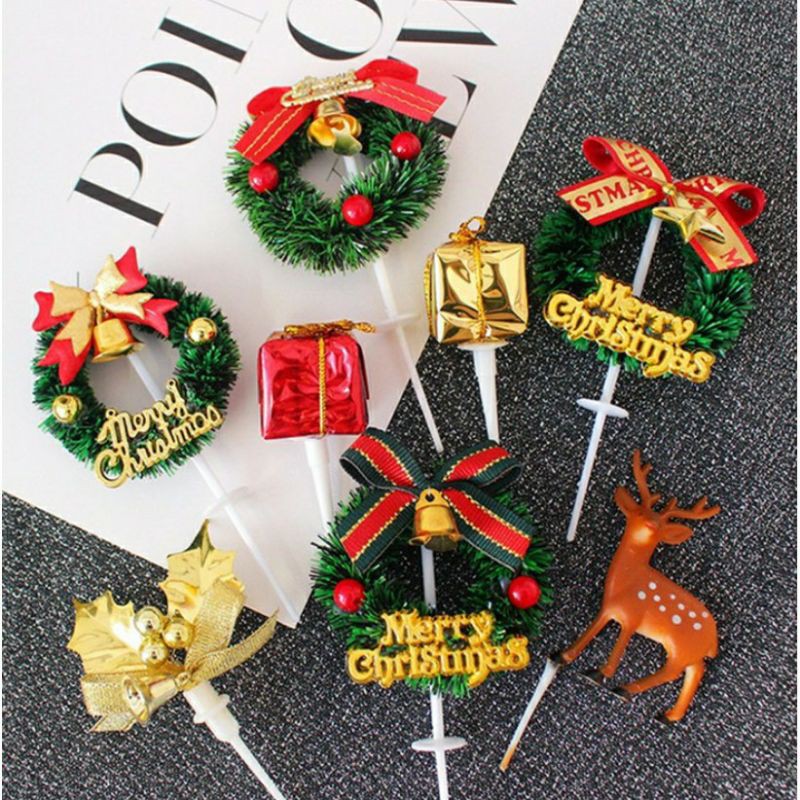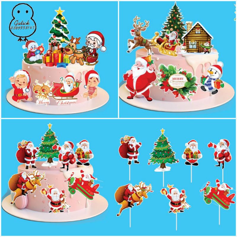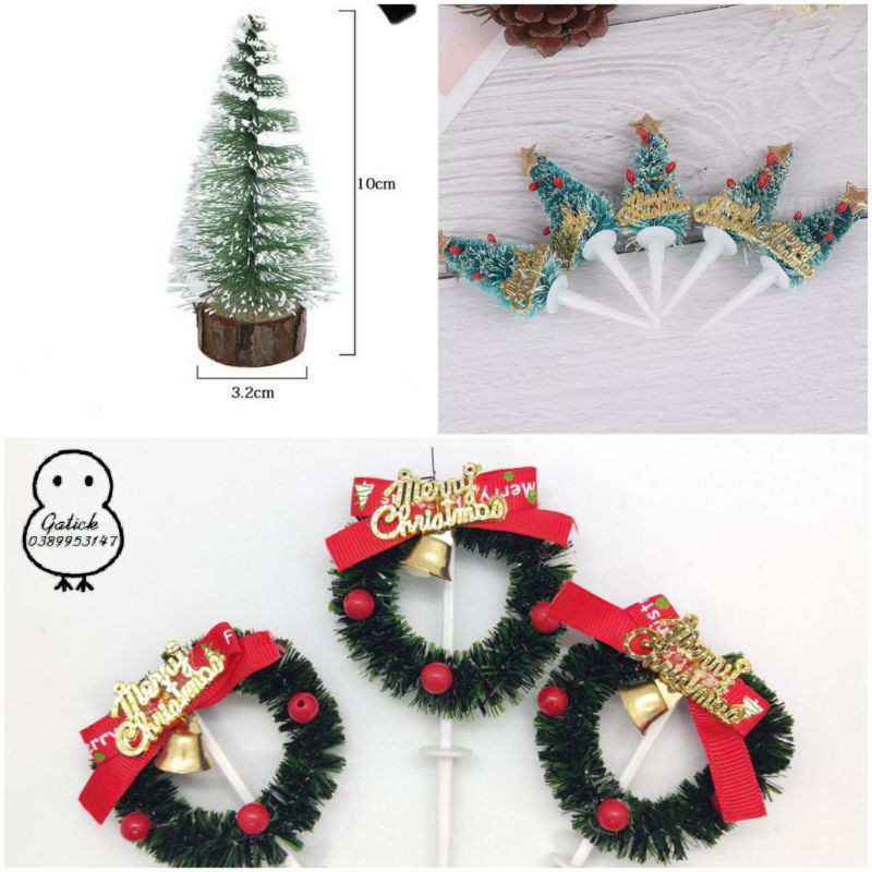 Cây thông giáng sinh noel, phụ kiện trang trí bánh kem, topper bánh kem noel- Phụ kiện gồm nhiều mẫu đa dạng phục vụ chủ đề bánh kem noel
