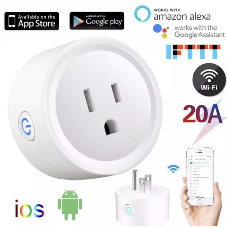 Thiết Bị Điện Gia Dụng > Mạch điện & Phụ tùng > Ổ cắm điện & Dây nối || (Với Thống Kê Điện) Ổ cắm WiFi chuẩn Mỹ 3 chân 20A/10A Smart Life,work Google & AlexaCòn hàng