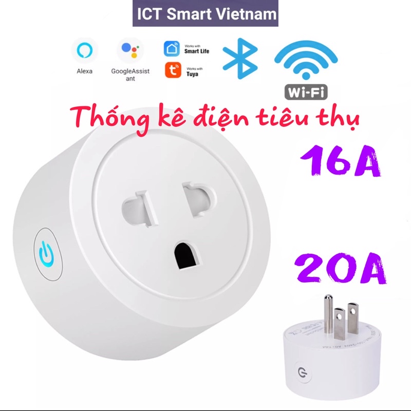 (Với Thống Kê Điện) Ổ cắm WiFi chuẩn Mỹ 3 chân 20A/10A Smart Life,work Google & Alexa