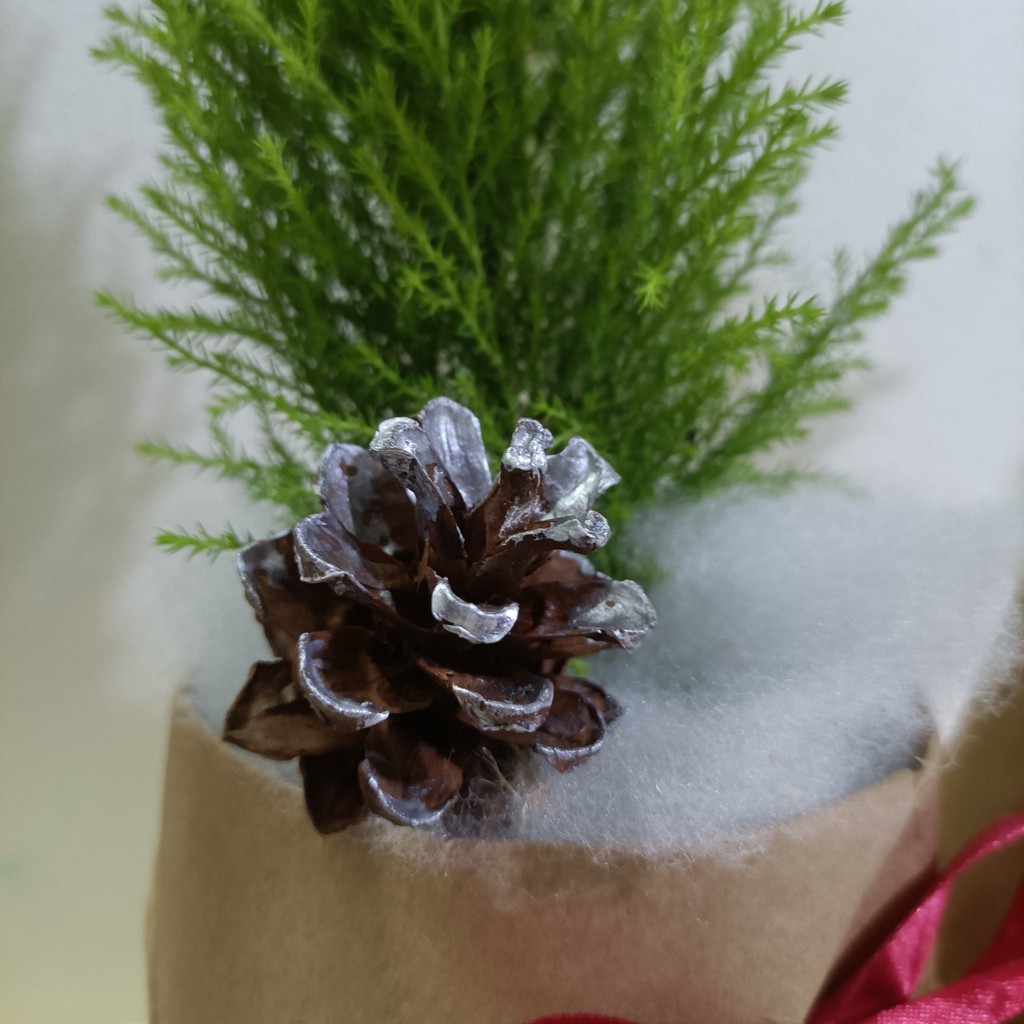 Quả thông được phủ lớp sơn trắng phía ngoài, giúp trông quả thông trông bắt mắt 1 cách tự nhiên