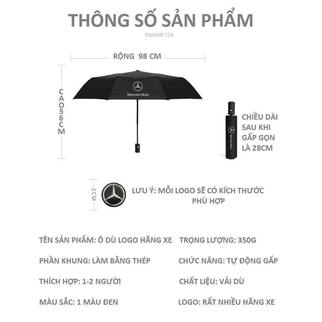 - Tên sản phẩm: Ô dù tự động đóng mở, chống tia UV in logo các hãng xe nổi tiếng