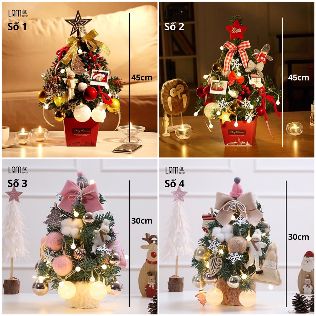 Cây thông mini, cây thông noel để bàn trang trí mùa Noel rực rỡ đầy đủ phụ kiện và đèn LED đi kèm