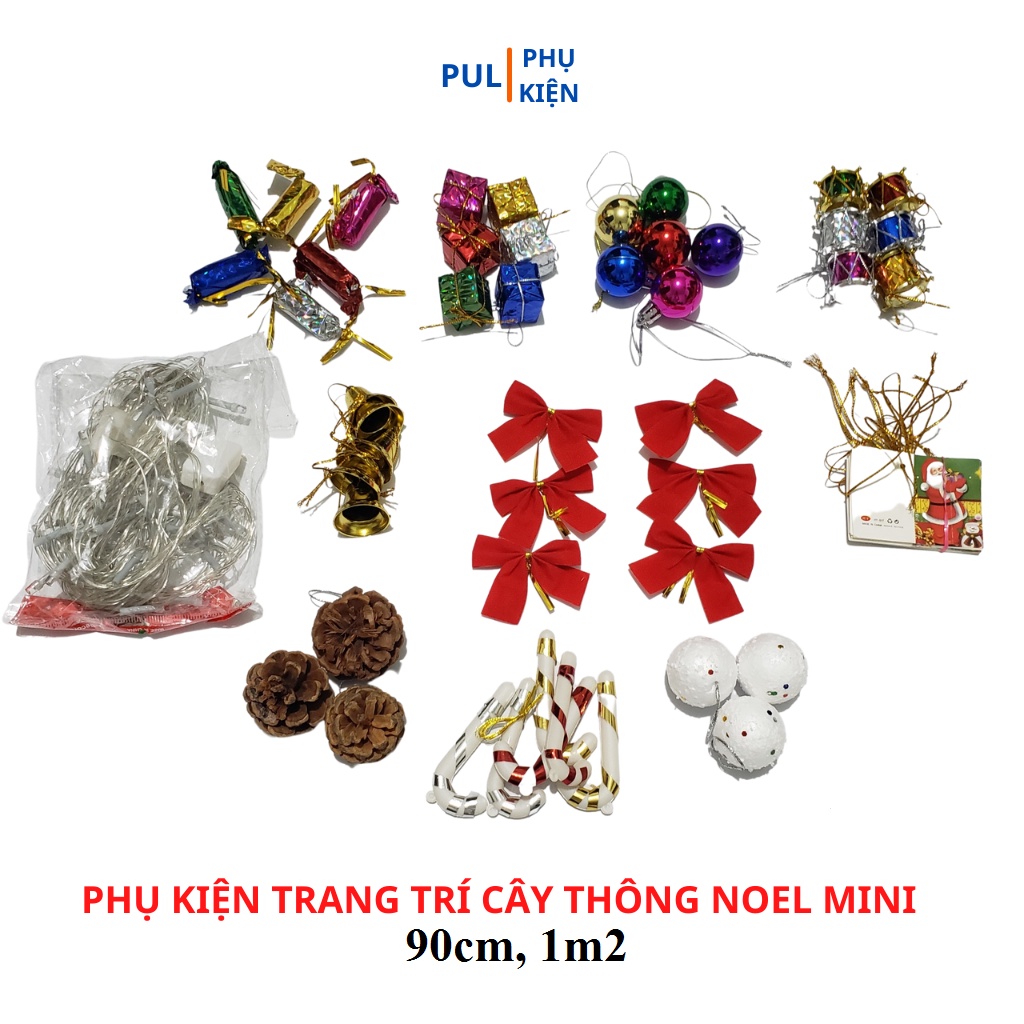 **Cây thông+Full PKiện: Gồm 1 cây thông noel 90cm (hoặc cây thông 1m2) + 1 dây đèn led + 1 túi phụ kiện 60 món (Lưu ý: Phụ kiện về nhiều đợt, nên có thể khác nhau vài món nhưng đảm bảo đủ số lượng)