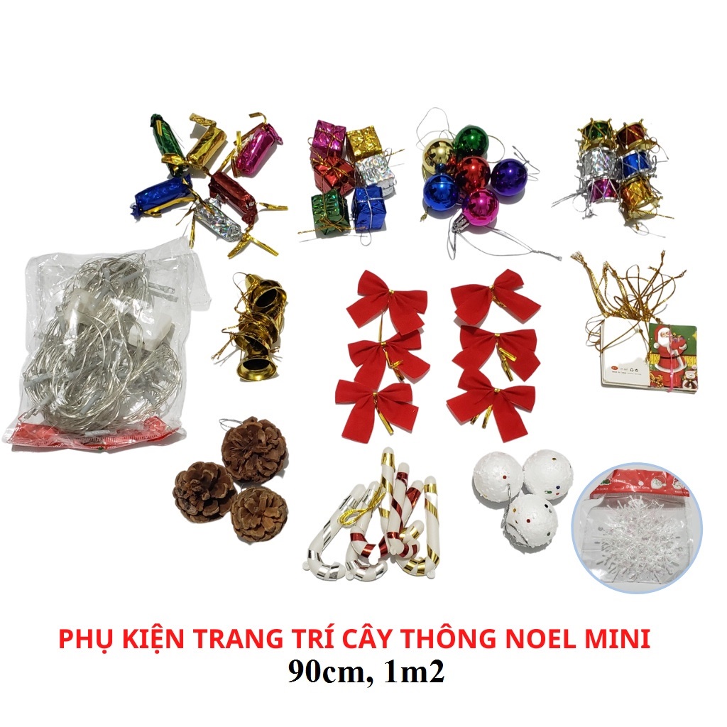 Cây thông noel 1m2 trang trí giáng sinh cho nhà cửa, phòng khách, phòng ngủ Full phụ kiện trang trí