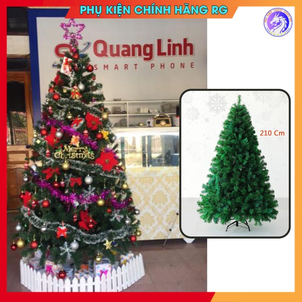 Cây thông noel 2m1 chân sắt trang trí Giáng Sinh tặng kèm ngôi sao đỉnh và 5 dây kim tuyến