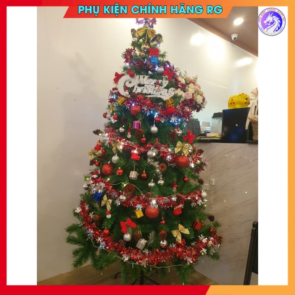 Cây thông noel 2m4 chân sắt tặng set phụ kiện trang trí giáng sinh và dây đèn led cực đẹp
