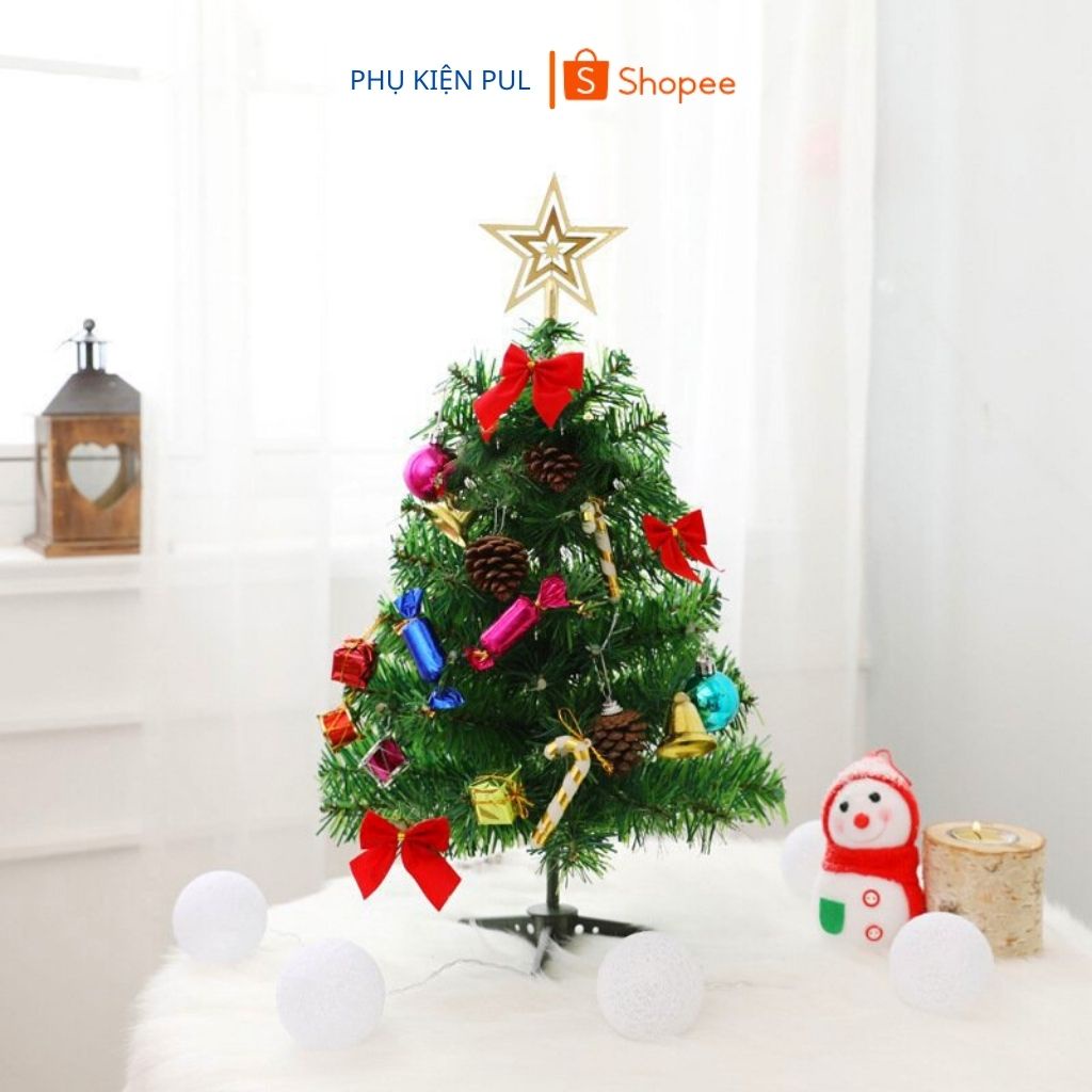 Cây thông noel 60cm mini để bàn nhỏ gọn kèm phụ kiện đẹp trang trí noel trong nhà văn phòng quà tặng giáng sinh