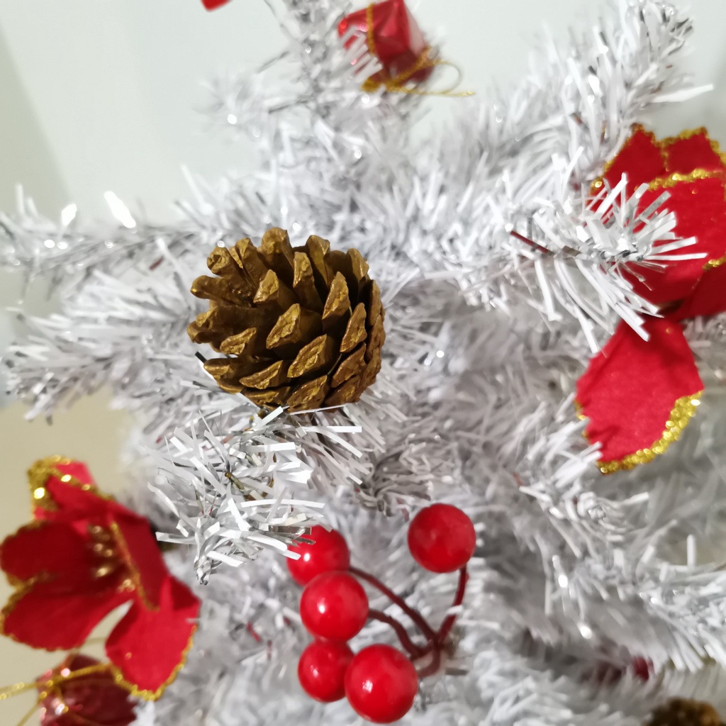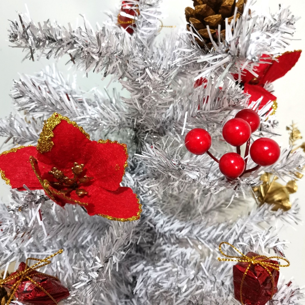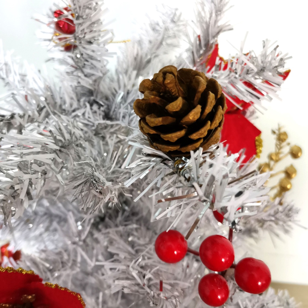 Nhà cửa & Đời sống > Trang trí nhà cửa > Khác || Cây thông noel để bàn 40cm, 52cm quà tặng trang trí giáng sinh hàng Việt Nam chất lượng cao trắng bạc đế nhựa bọc vải đỏCòn hàng
