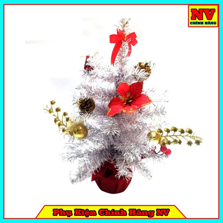 Giới thiệu Cây Thông Noel Để Bàn Màu Trắng Và Xanh Đế Nhựa Bọc Vải Đỏ