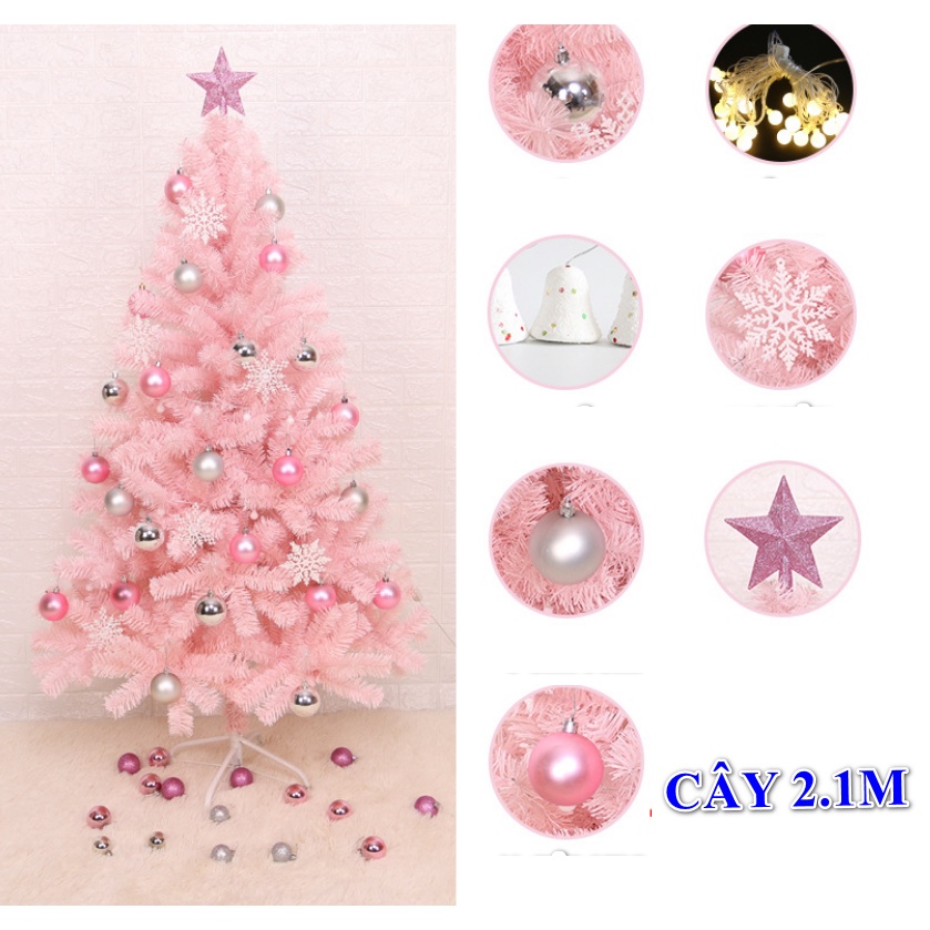 Cây thông noel màu hồng cao 2.1 mét kèm đủ phụ kiện trang trí