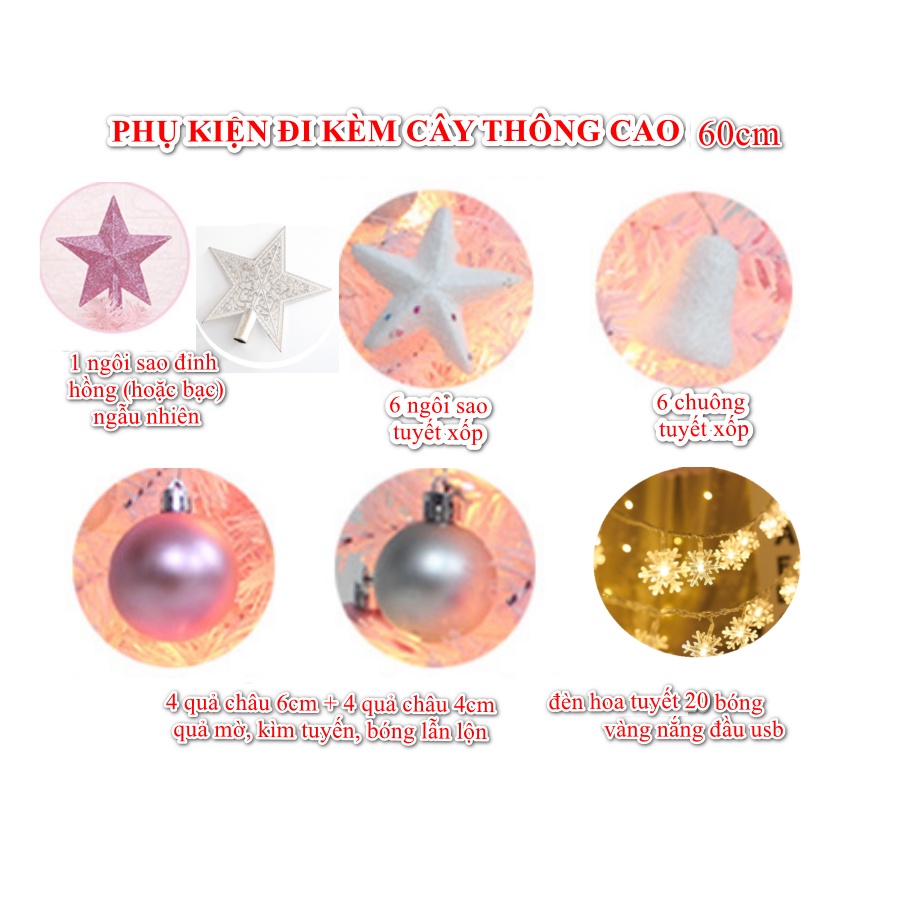 Cây thông noel màu hồng CAO 60CM kèm đầy đủ phụ kiện