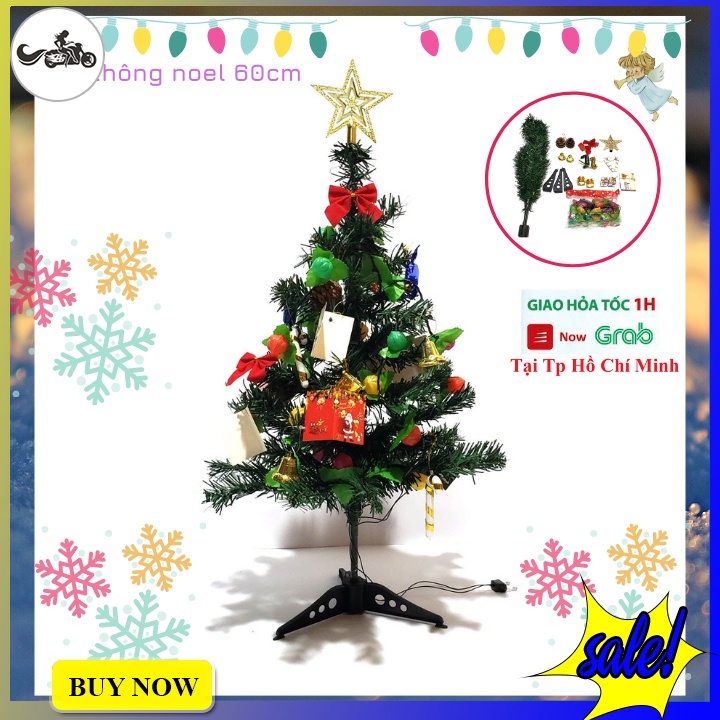 Cây thông 60cm xanh : 1 cây thông 60cm + bộ phụ kiện và đèn led