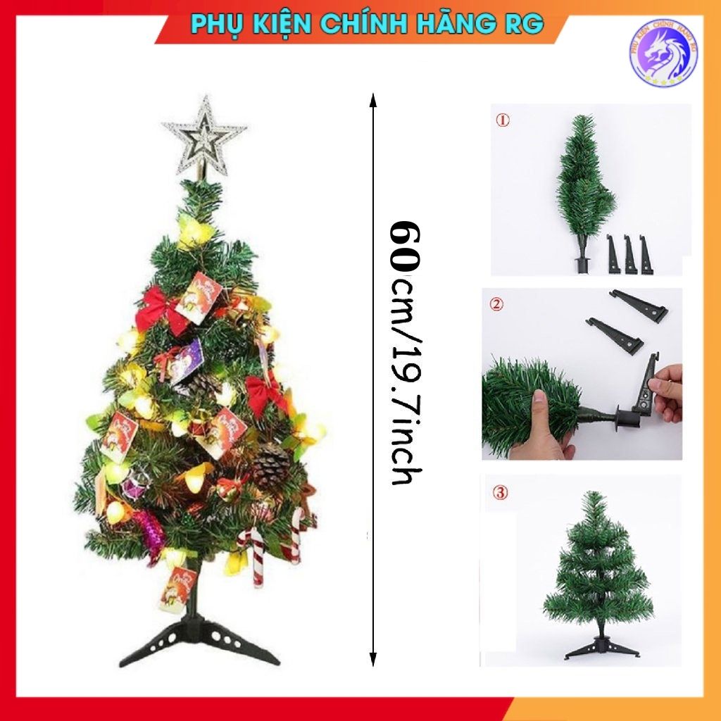 Cây thông noel mini 60cm full phụ kiện trang trí dễ thương cây thông giáng sinh mini để bàn