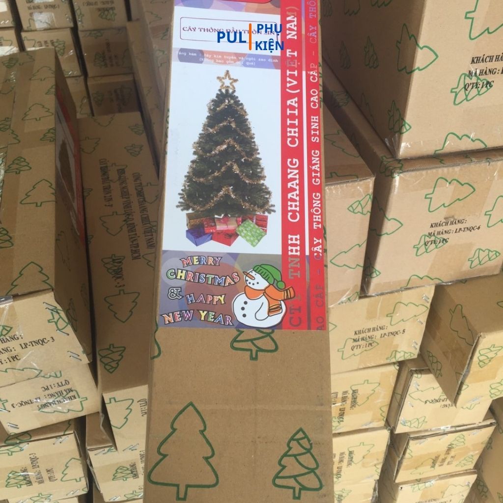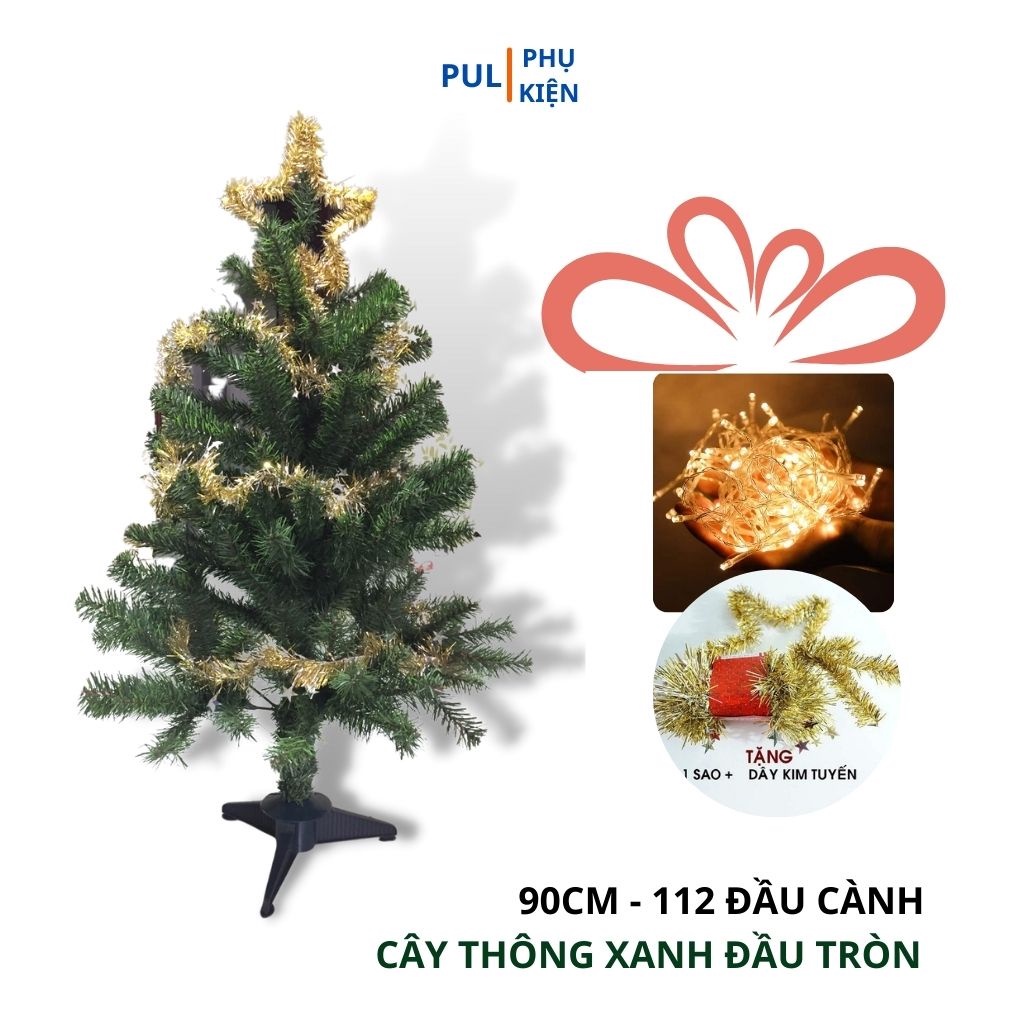 ***Chỉ cây thông: Gồm 1 cây thông noel mini 90cm, Kèm 1 ngôi sao đỉnh và 2 dây kim tuyến.
