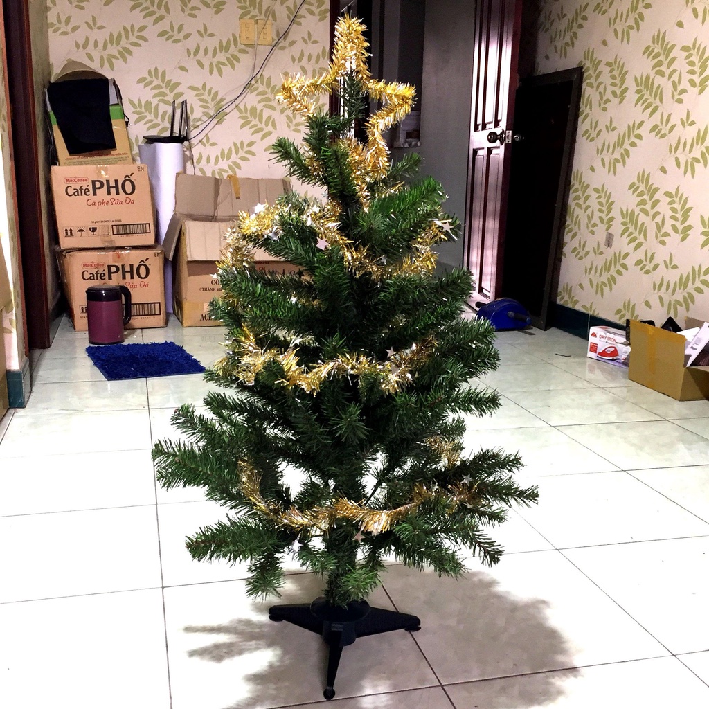 Nhà cửa & Đời sống > Trang trí nhà cửa > Khác || Cây thông noel mini để bàn 90cm kèm ngôi sao đỉnh dây kim tuyến và dây đèn led trang trí cây thông giáng sinh 0.9mCòn hàng