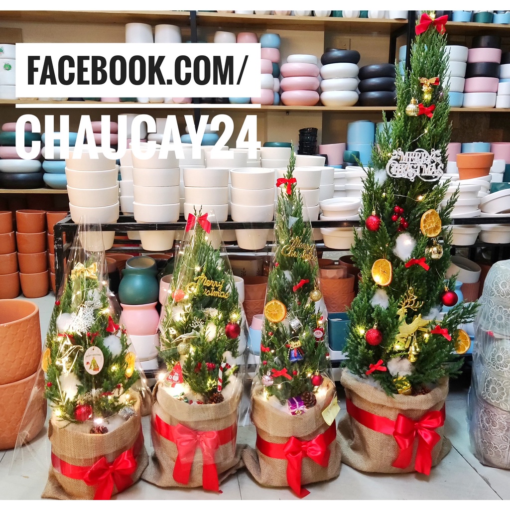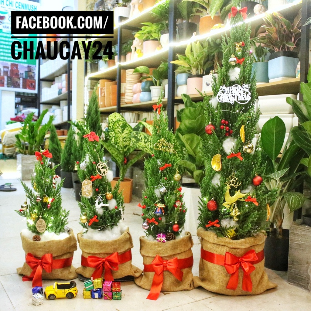 - Sản phẩm bao gồm 2 phân loại cây:1. Cây thông NOEL thật đã trang trí đầy đủ, bao gồm túi vải bao bố kèm nơ đỏ, sẵn dây đèn sáng bằng pin tiểu, bông gòn tuyết, các phụ kiện trang trí (Tùy mỗi cây shop sẽ trang trí các sản phẩm tương đồng nhau (TRƯỚC KHI GIAO CHO KHÁCH SẼ GỬI ẢNH CHỤP TRỰC TIẾP CÂY CHO KHÁCH)