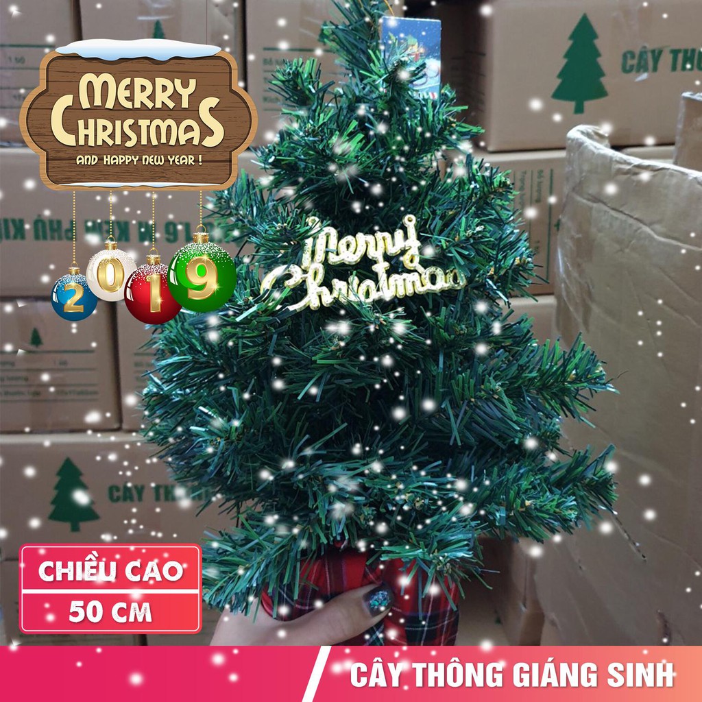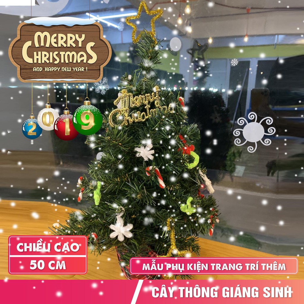 Cây thông Noel mini trang trí đầy đủ phụ kiện cao 50m mẫu C12Cây thông mini 50cm cây thông để bàn tặng kèm chữ Merry Christmas