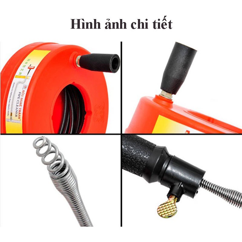 Dây lò xo có thể kéo dài lên đến 5m, khả năng uốn cong linh hoạt, luồn sâu vào mọi ngóc ngách của ống cống, ống thoát nước…Sản phẩm gồm dây lò xo cứng cáp, kết hợp tay quay phối hợp nhịp nhàng, giúp loại bỏ những vật cản làm tắc nghẽn cống, lỗ thoát nước nhà tắm, bồn rửa mặt, bồn cầu…