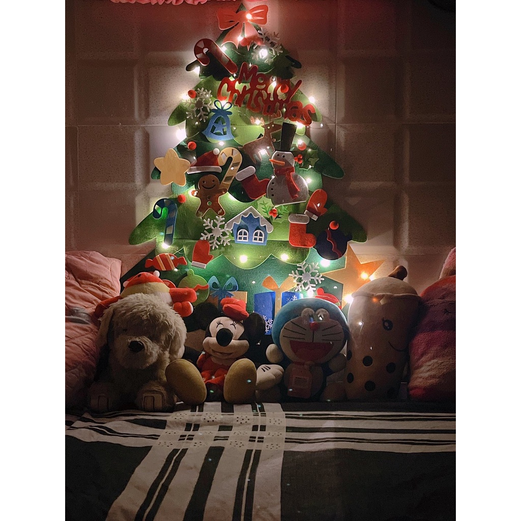 Nhà cửa & Đời sống > Trang trí nhà cửa > Khác || Cây thông treo tường dán cửa kính giáng sinh trang trí noel vải nỉ cao cấp 32 chi tiết kèm đèn led lung linh cho béCòn hàng