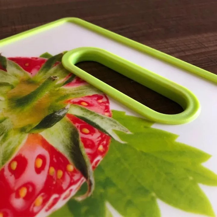 Thớt nhựa tay cầm phù hợp với việc cắt - thái - băm với các đồ ăn chín, bánh mỳ, bánh ngọt hoặc các loại rau củ quả